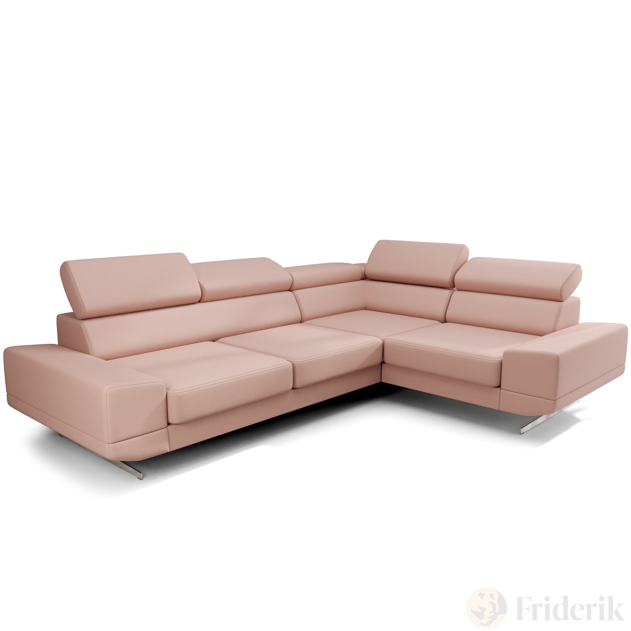 Ecksofa Milano II – Modernes Ecksofa mit verstellbaren Kopfstützen und hohen Metallfüßen, Echtleder U-54 - Rosa