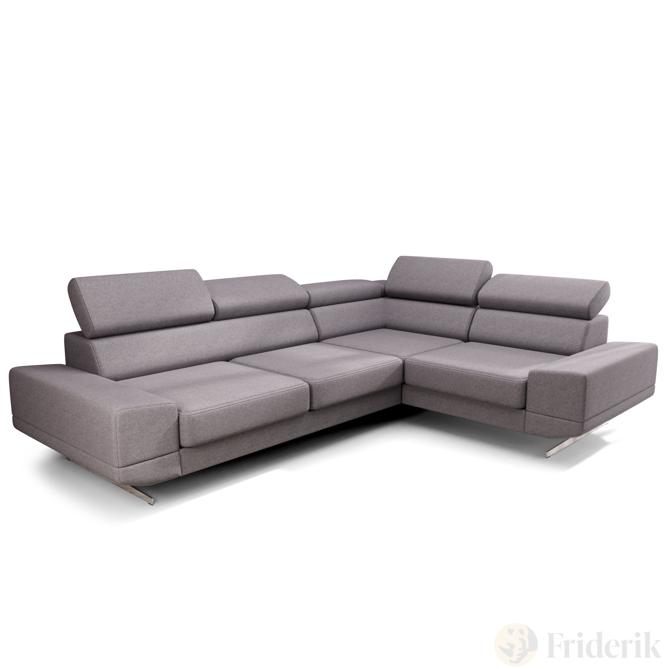 Ecksofa Milano II – Modernes Ecksofa mit verstellbaren Kopfstützen und hohen Metallfüßen, Primo 88 - Hellgrau
