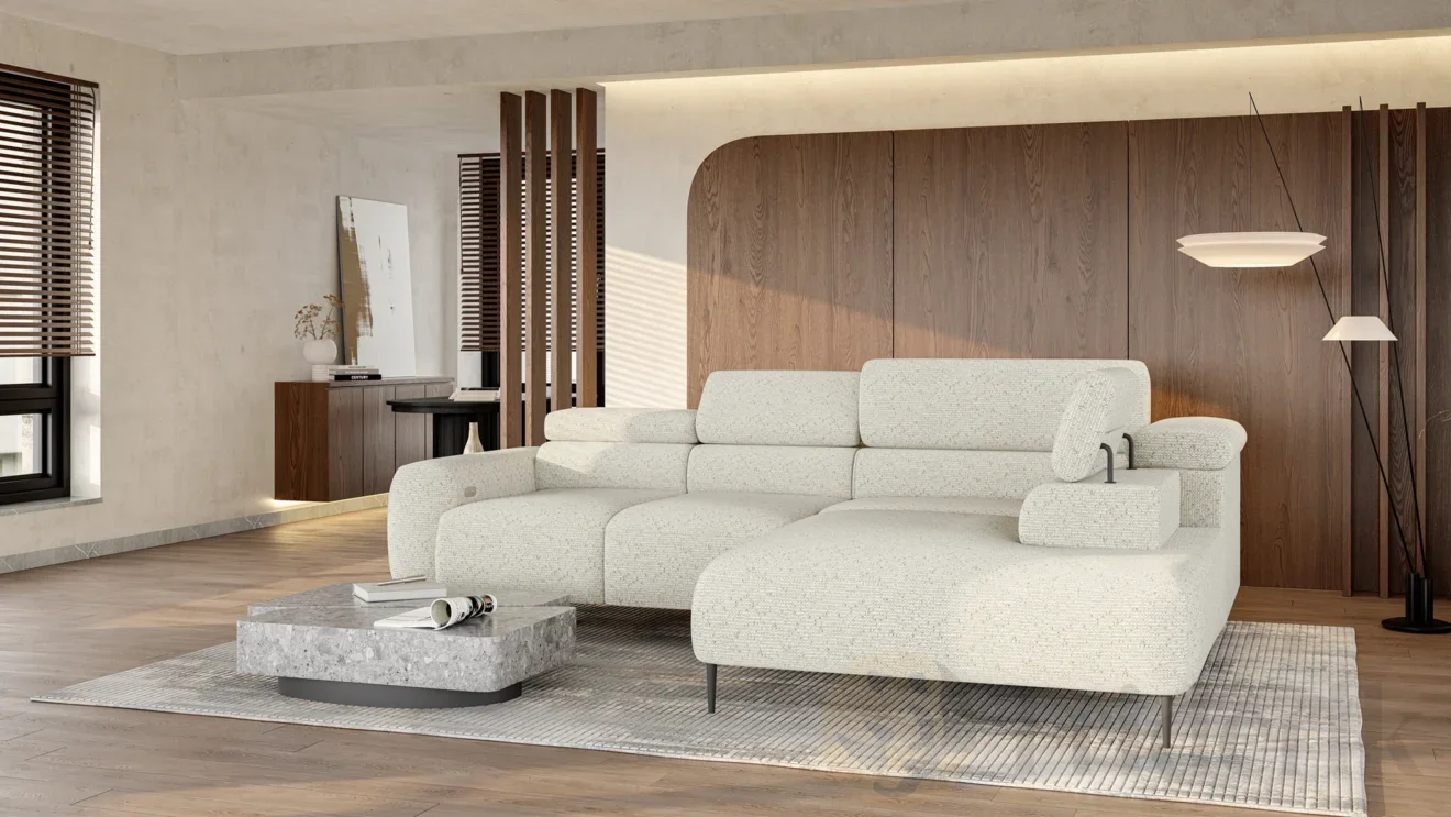 Eleganz, die sich bewegt. Stellen Sie sich vor, Sie kommen nach einem langen Arbeitstag nach Hause und Ihr Sofa passt sich auf Knopfdruck Ihrem Bedürfnis nach Entspannung an. Das Ecksofa NALDO L ist mehr als nur ein Möbelstück – es ist ein Statement für modernes Wohnen. Mit seiner klaren Linienführung, der glatten Oberfläche ohne Steppungen und den grazilen, hohen Füßen bringt es eine fast schwebende Leichtigkeit in Ihr Wohnzimmer. Ob gemütlicher Leseabend oder ein entspanntes Wochenende mit der Familie: NALDO L ist der Ort, an dem Design und Komfort perfekt verschmelzen.