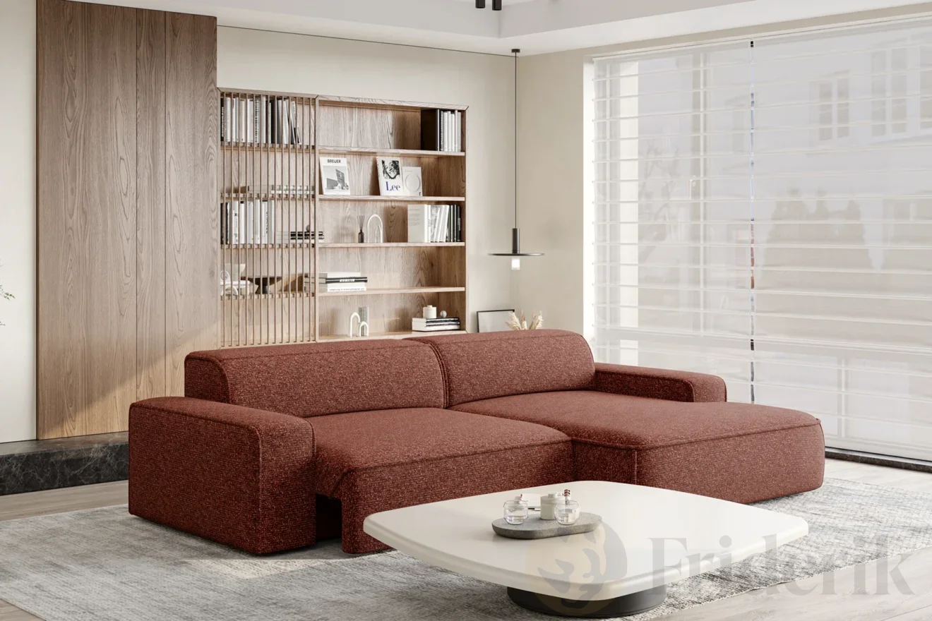 Ecksofa NUBE S – Modernes Design mit elektrischer Sitztiefenverstellung | 286x171 cm - Kupferrot