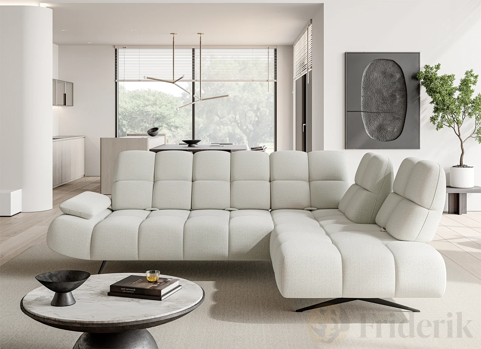 Eleganz trifft auf Funktionalität. Das Ecksofa PRADO ist mehr als nur ein Möbelstück – es ist das Herzstück Ihres Wohnzimmers. Mit seiner klaren, modernen Formensprache und den markanten Steppungen bringt es zeitlose Ästhetik in Ihr Zuhause. Stellen Sie sich vor: Nach einem langen Tag sinken Sie in die weichen Polster, aktivieren per Knopfdruck die elektrische Fußstütze und genießen maximale Freiheit. PRADO passt sich Ihrem Leben an, nicht umgekehrt. Ob ein gemütlicher Leseabend oder ein entspanntes Treffen mit Freunden – dieses Sofa bietet für jeden Moment die perfekte Kulisse.