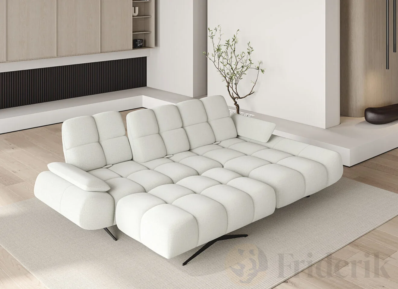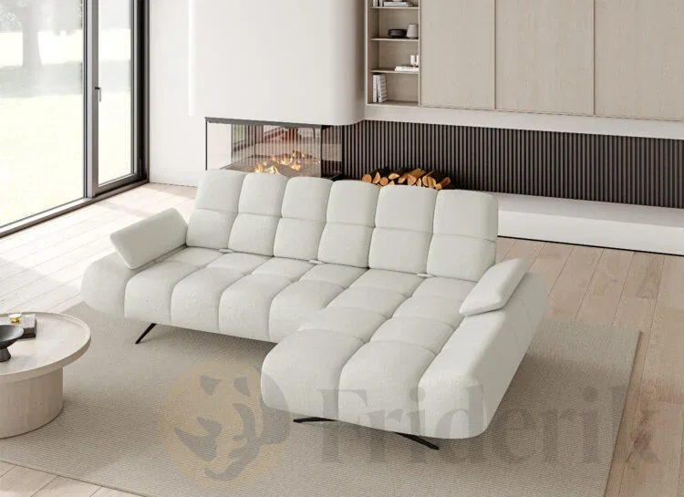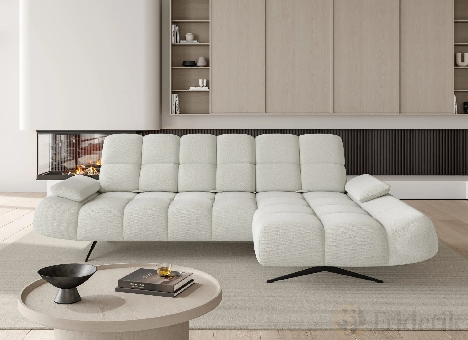 Erleben Sie mit dem Ecksofa PRADO S eine neue Dimension des Wohnens. Dieses Möbelstück ist nicht einfach nur ein Sofa – es ist Ihr persönlicher Rückzugsort, der moderne Ästhetik mit funktionaler Raffinesse verbindet. Die klare Linienführung und das kubische Steppmuster verleihen Ihrem Wohnzimmer einen zeitlosen, luxuriösen Charakter.