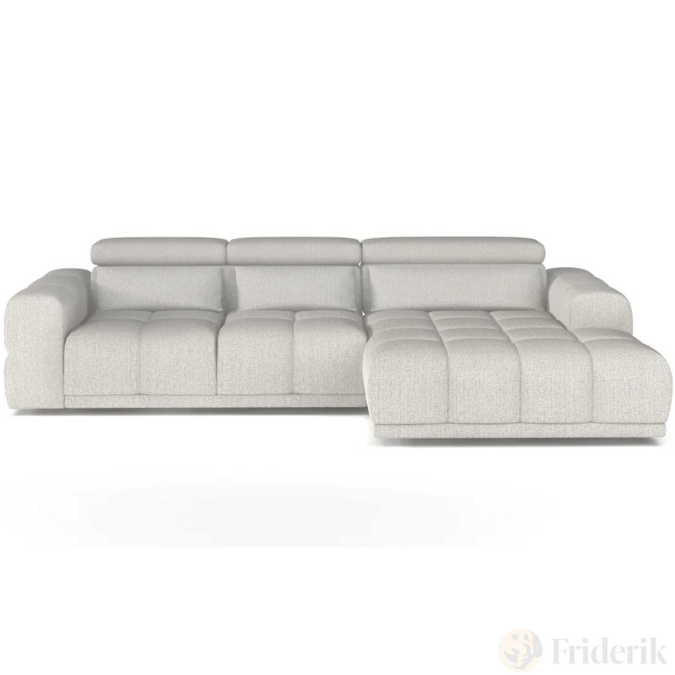 Ecksofa Panama S mit elektrischer Sitztiefenverstellung und verstellbaren Kopfstützen - Stoff Kansas 11, Silver Grau