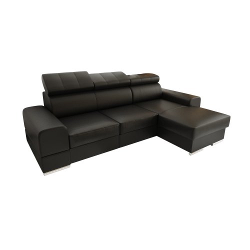 Ecksofa ROYAL MINI aus echtem Leder – 260x160 cm mit Schlaffunktion & Bettkasten, Schwarz K-70
