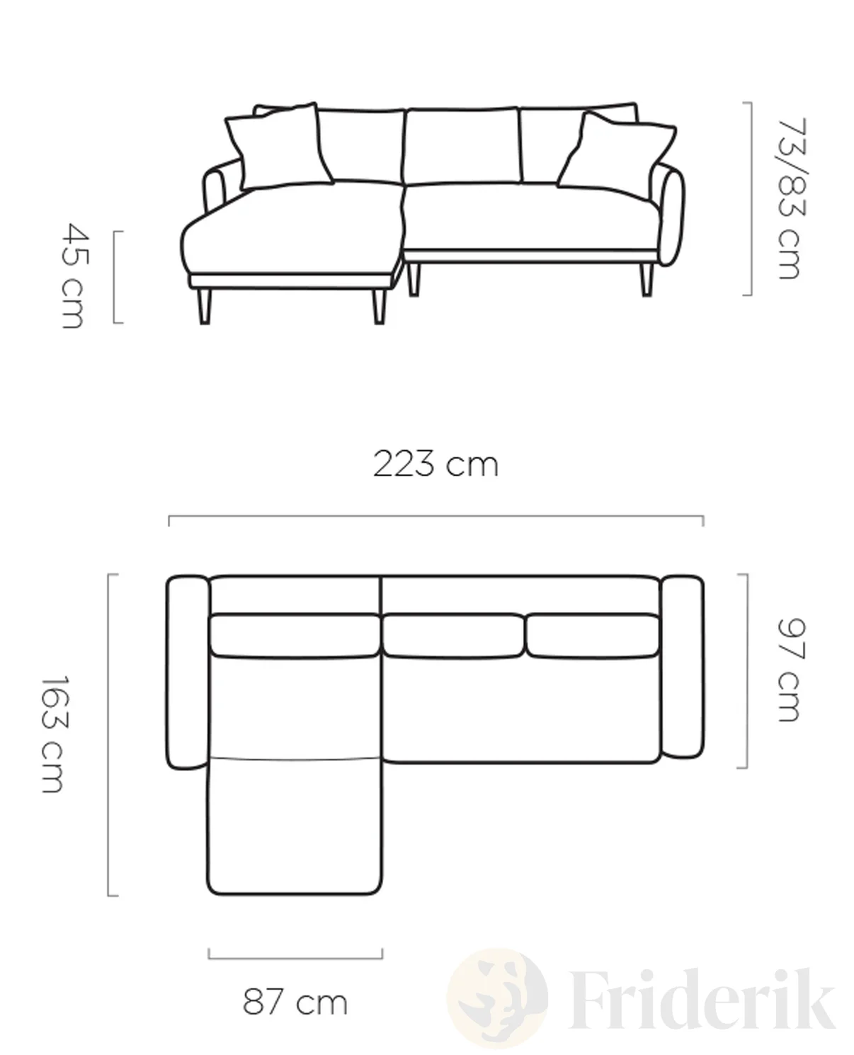 Gesamtmaße: 233 cm (L) x 163 cm (B) x 83 cm (H)