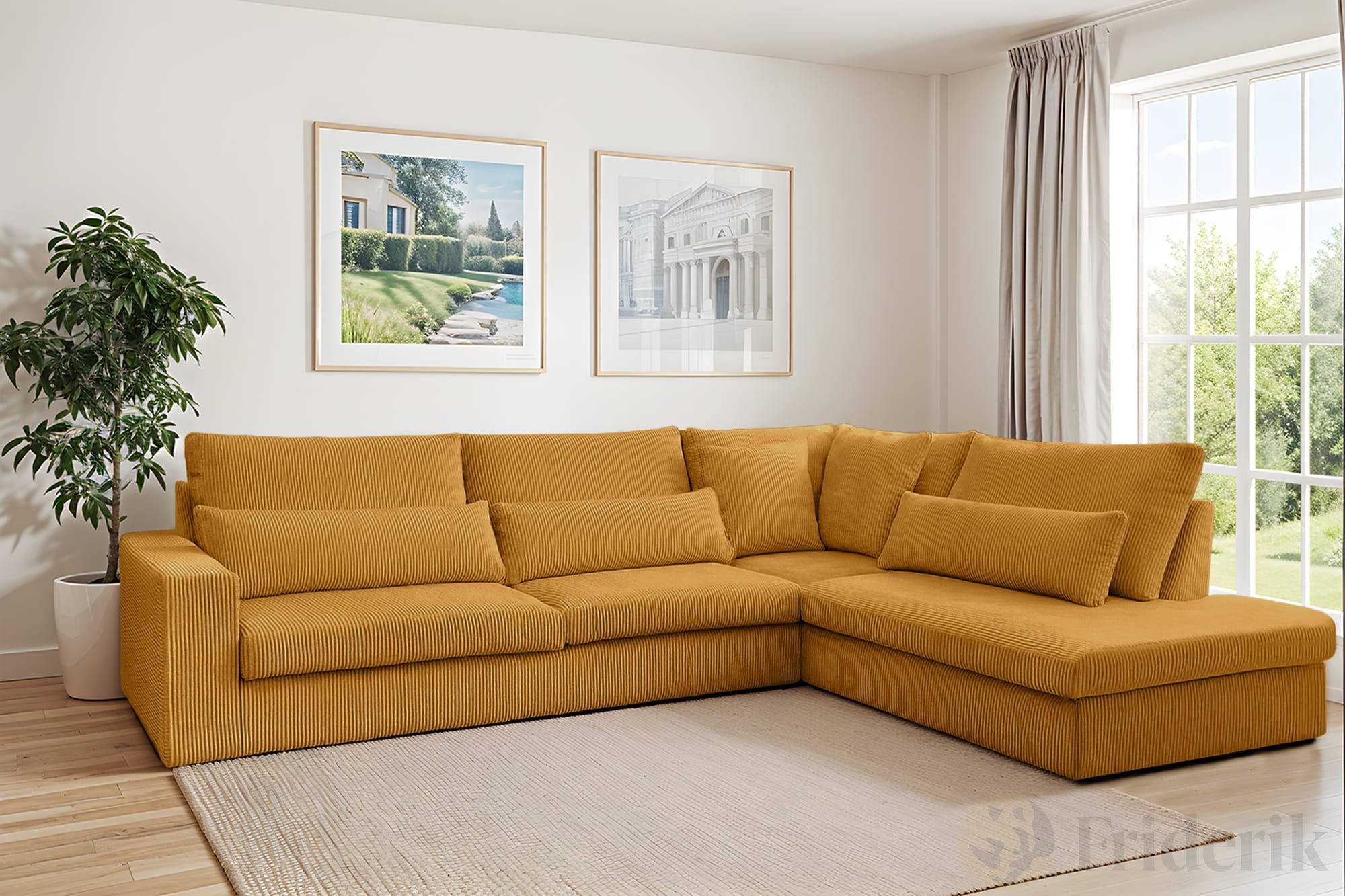 Ecksofa SVEN – modernes Sofa in L-Form 315x245 cm, freistehend, bequem und stilvoll - Senf (Poso 01)