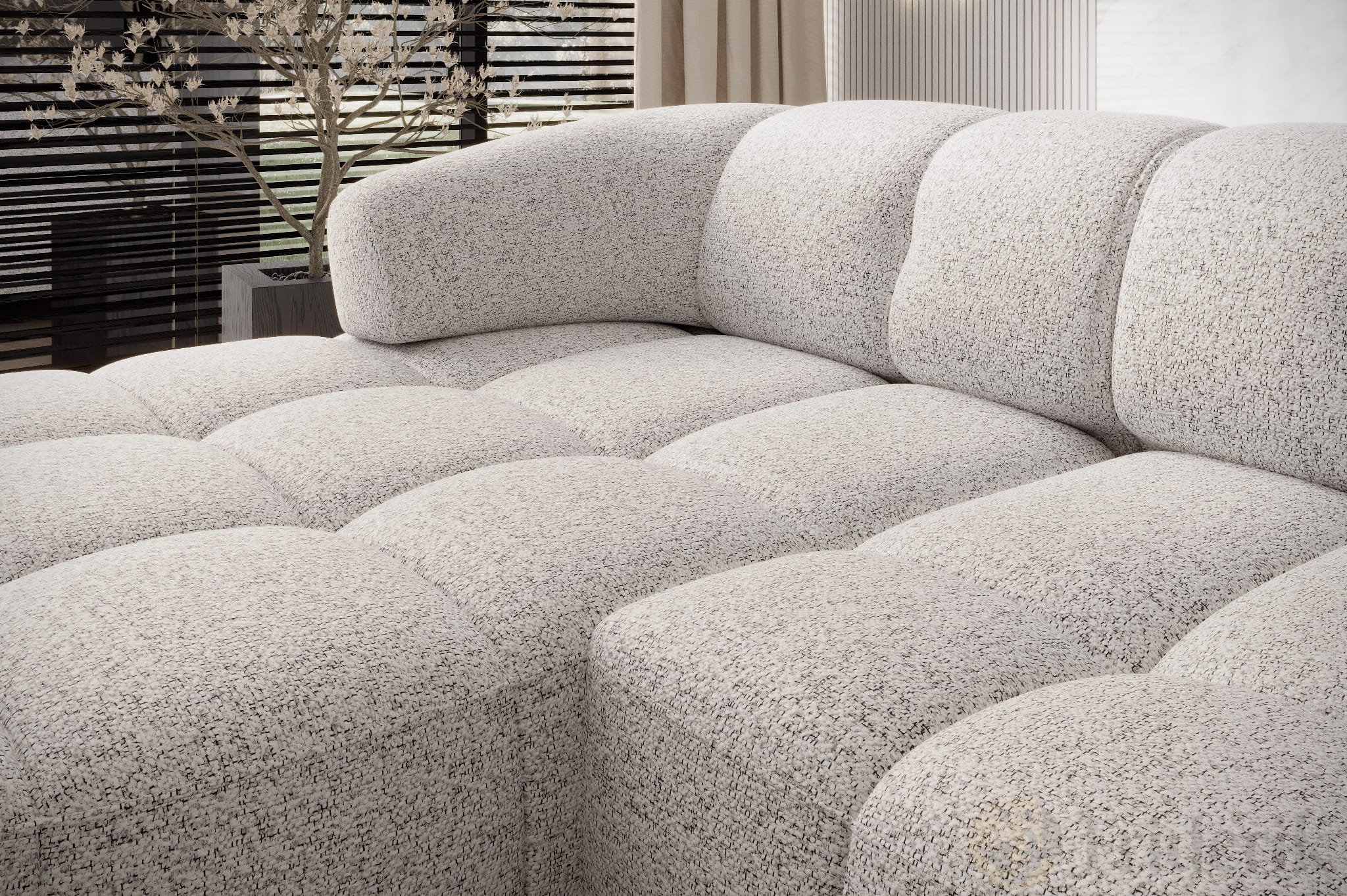 PUENTE ist ein grob strukturierter, sehr griffiger Möbelstoff mit lebendigem Melange-Effekt. Die Mischung aus mehreren Garnfarben verleiht ihm Tiefe und Raffinesse. Der Baumwollanteil sorgt für angenehme Wärme und Weichheit – ideal für gemütliche Wohnlandschaften. Dank seiner Dicke und robusten Webstruktur ist er sowohl elegant als auch strapazierfähig.