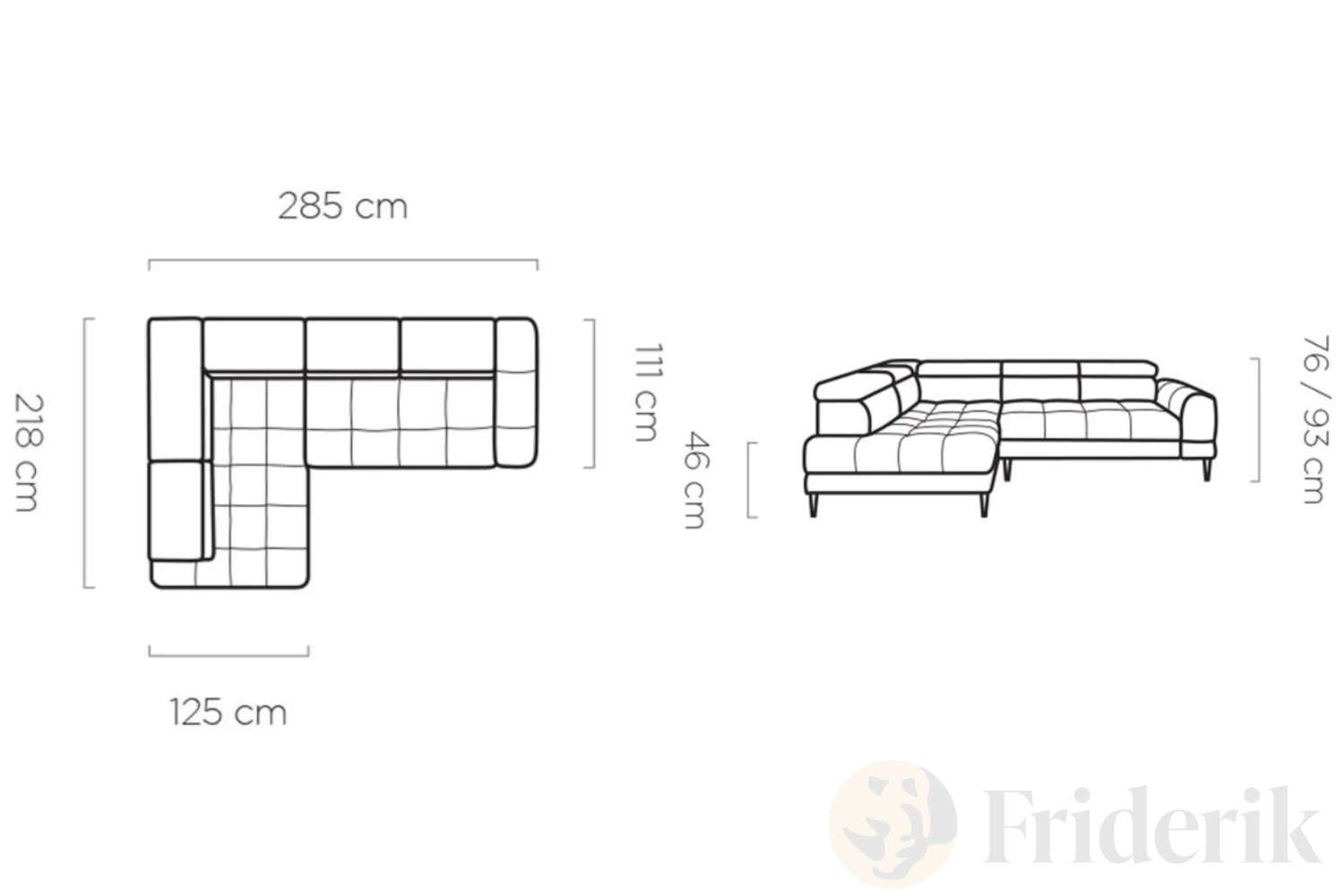 - Sitztiefe (Liegefläche links): 125 cm