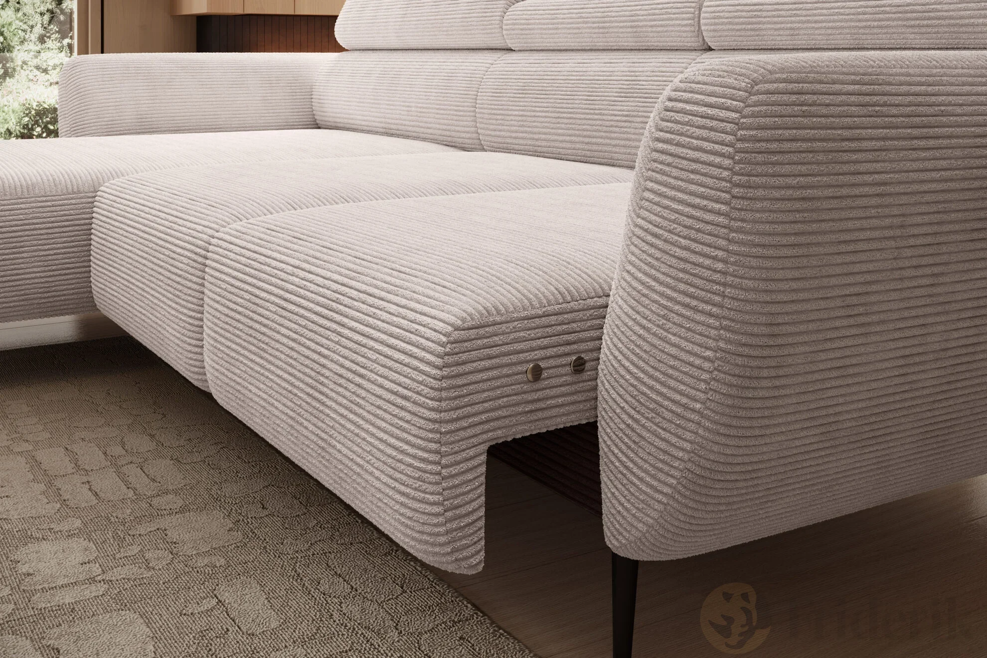Das Ecksofa ALI L verbindet modernes Design, hochwertige Materialien und maximalen Komfort. Der kuschelige Cordstoff, die elektrisch verstellbare Sitztiefe und die flexiblen Kopfstützen machen es zu einem Möbelstück, das den Alltag spürbar schöner macht.