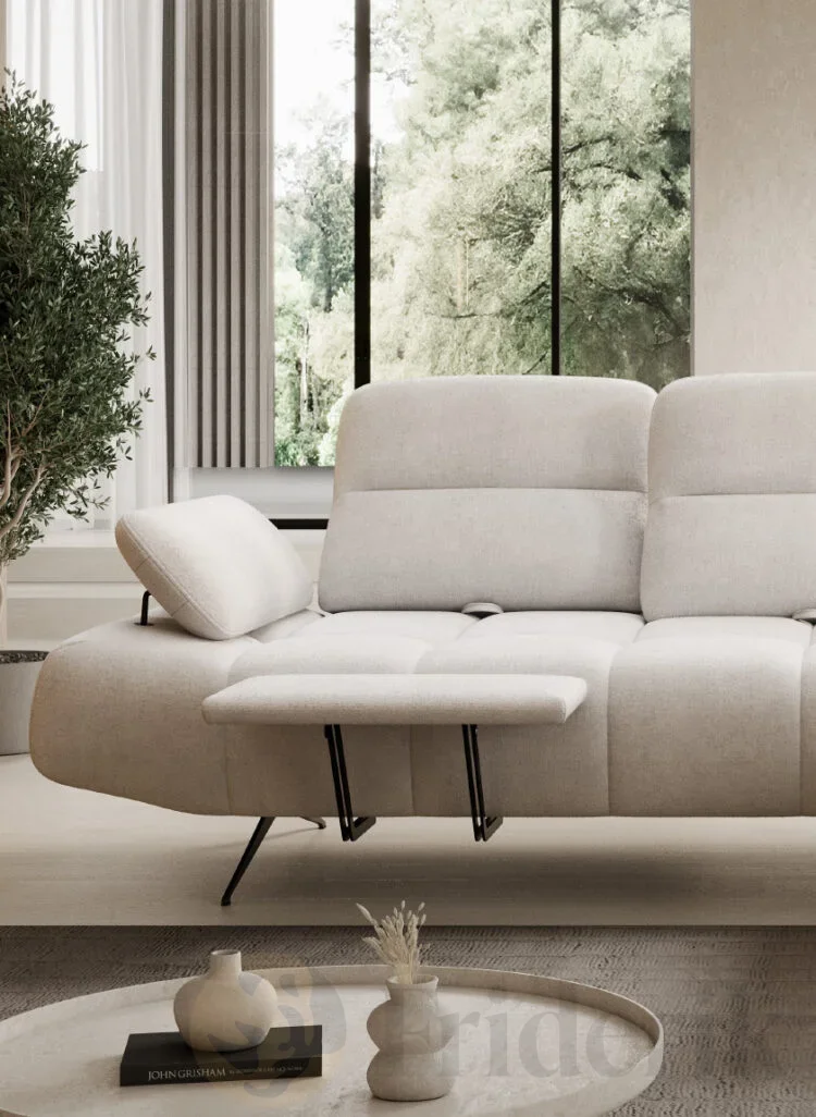 Eine perfekte Kombination aus modernem Design, durchdachter Funktionalität und außergewöhnlichem Komfort. Dank der elektrisch ausfahrbaren Fußstütze, verstellbaren Kopfstützen sowie der verschiebbaren Rückenlehne lässt sich jede Sitzposition individuell anpassen.