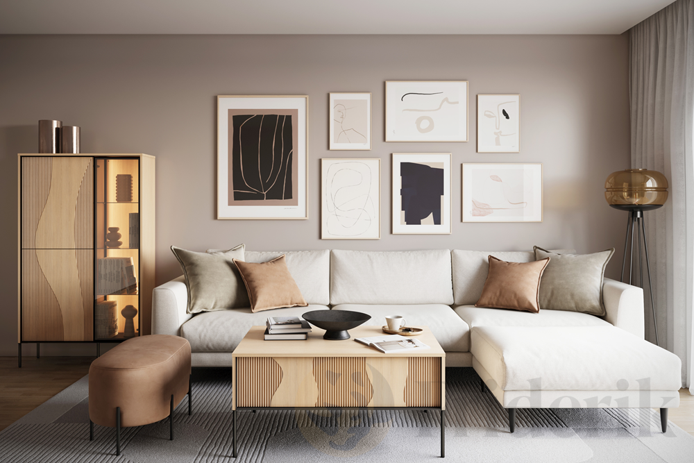 Die FLOW FW-01 ist eine moderne Vitrine mit Schrankfunktion, entworfen für stilvolle Wohnzimmer.