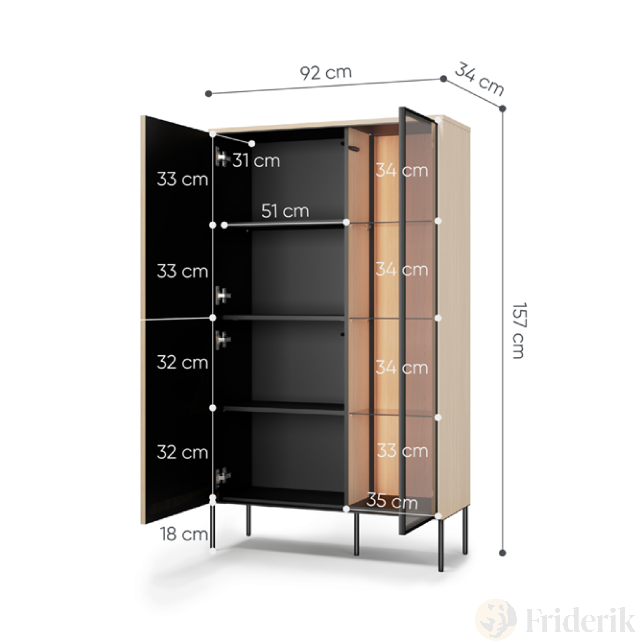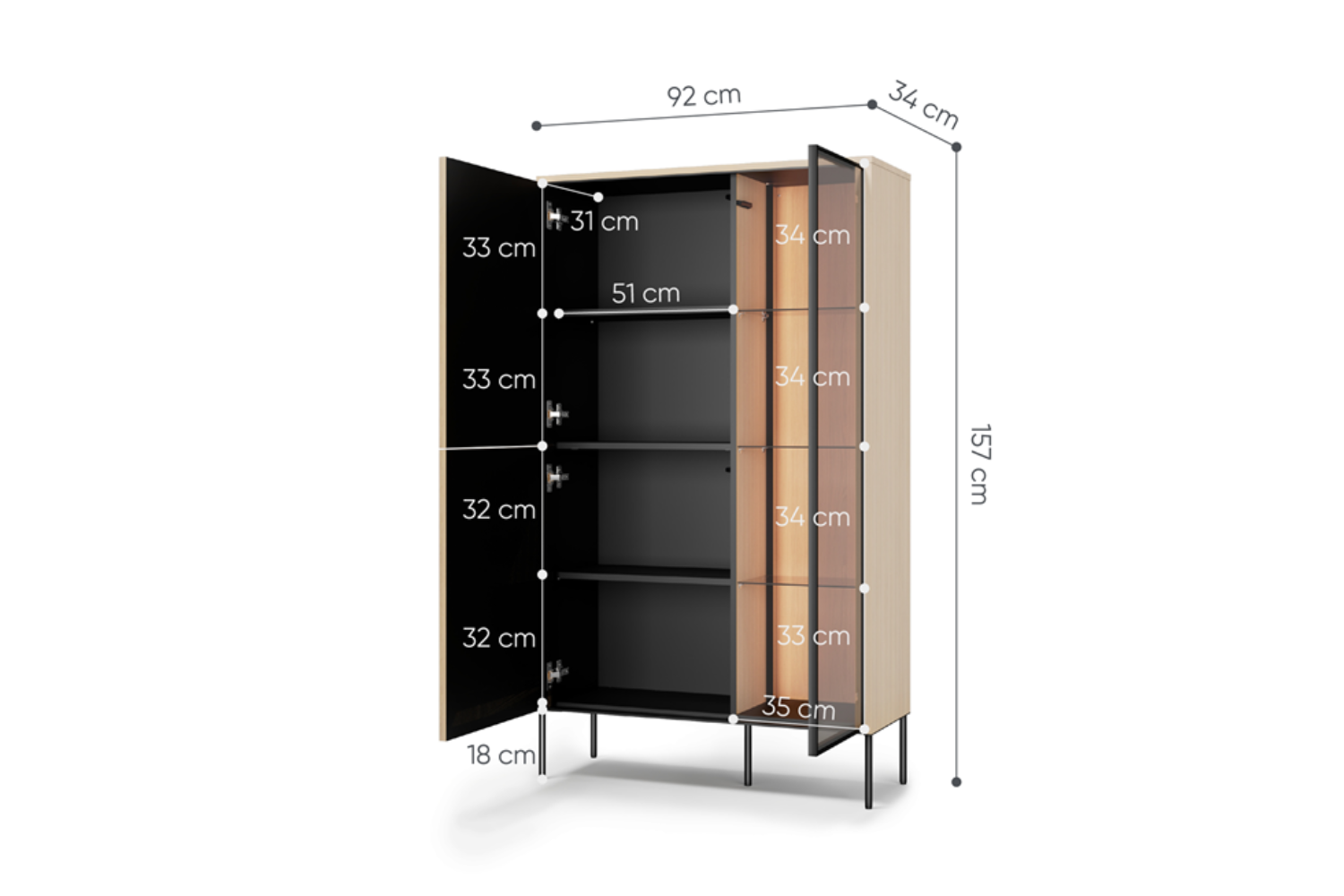 Das 2d1w-Layout sorgt dafür, dass die Vitrine nicht nur schön, sondern auch funktional ist – ideal für unterschiedlich große Räume.