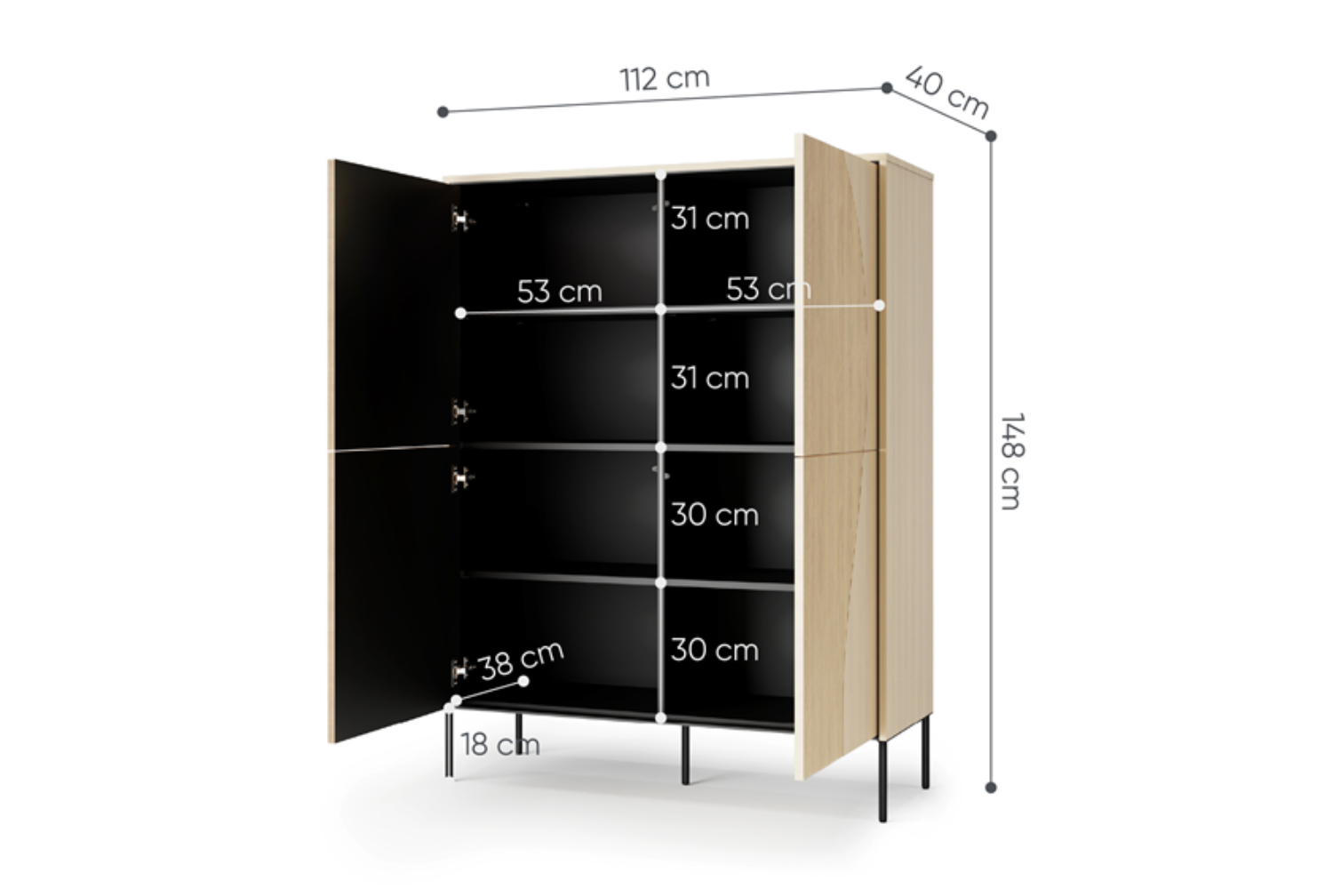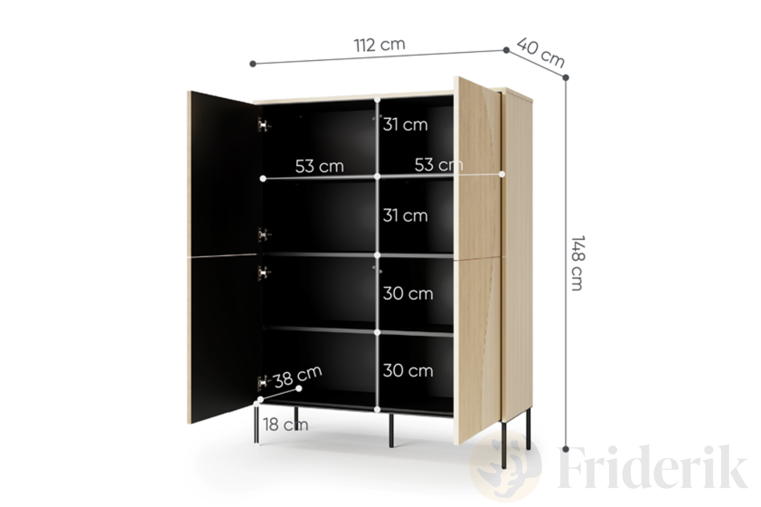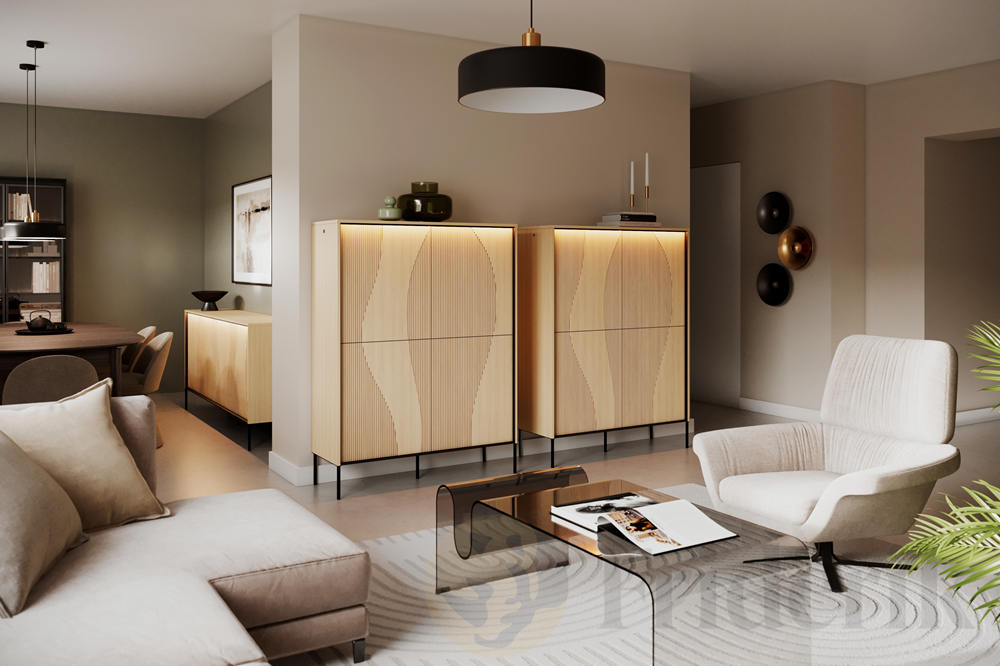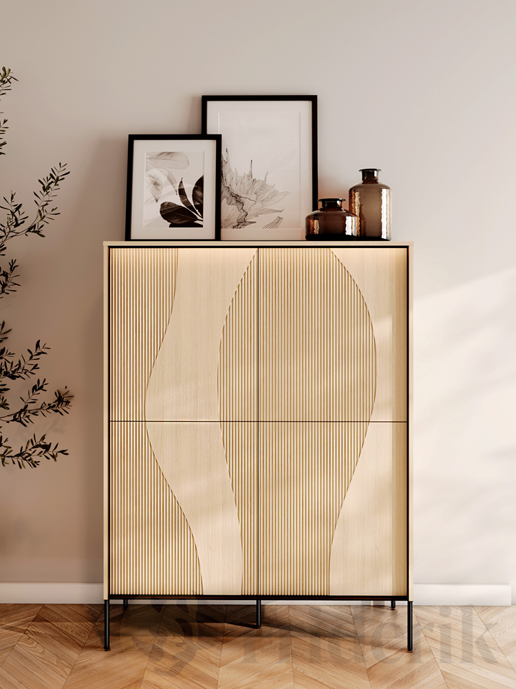 Die FLOW FW-02 ist eine viertürige Kommode, die perfekt in stilvolle Wohnzimmer passt.