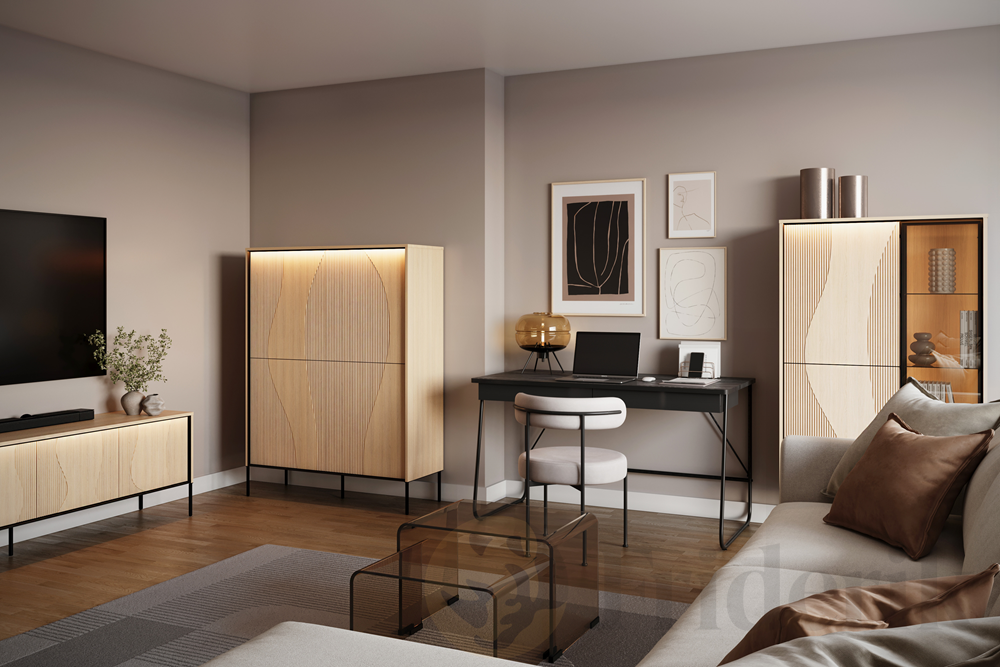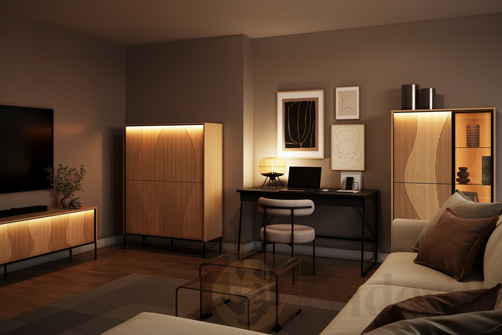 Die FLOW FW-02 vereint funktionalen Stauraum, modernes Design und dezente LED-Beleuchtung in einem Möbelstück. Die zeitlose Farbgebung, die klare Linienführung und die praktische Aufteilung machen diese Kommode zu einer stilvollen und langlebigen Ergänzung für Ihr Wohnzimmer. Ideal für alle, die Ordnung und Design gleichermaßen schätzen.