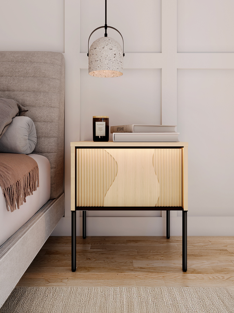 Der FLOW FW-07 ist eine elegante Nachtkonsole, die perfekt neben dem Bett Platz findet.