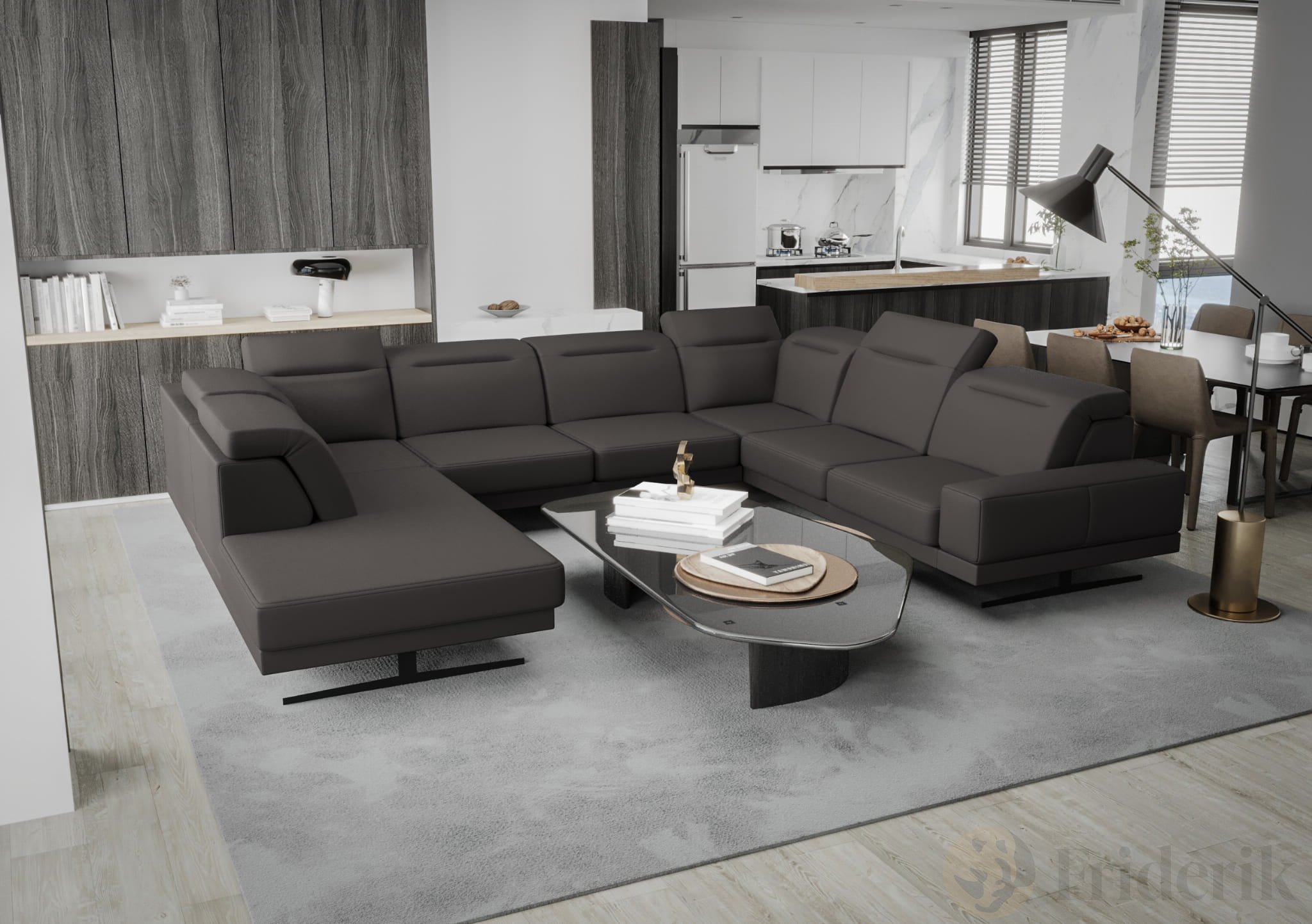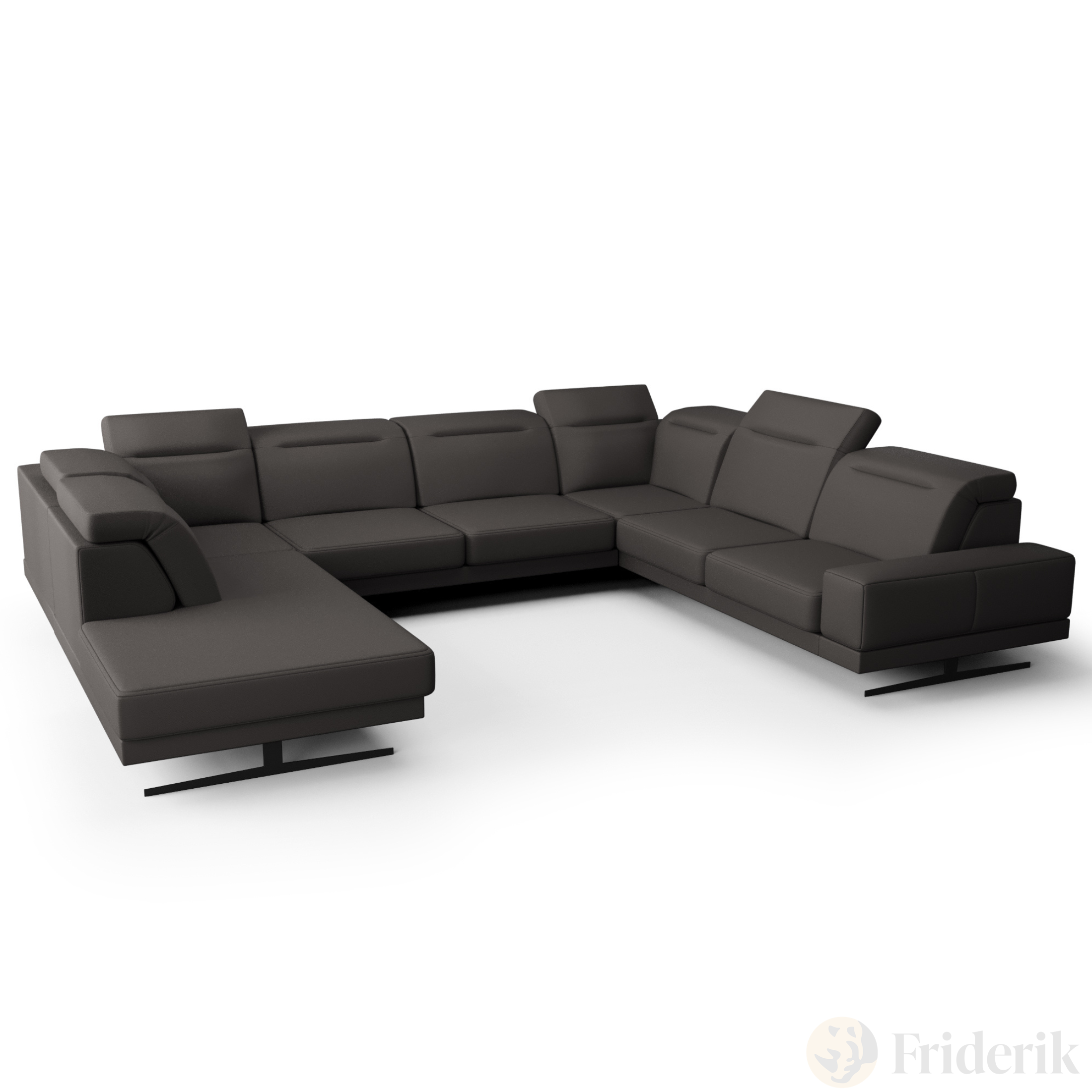 Fiore Max I Ecksofa 350x265 cm – Modernes XXL Ecksofa mit verstellbaren Kopfstützen, Echtleder U-25 - Dunkle Asche, Grau