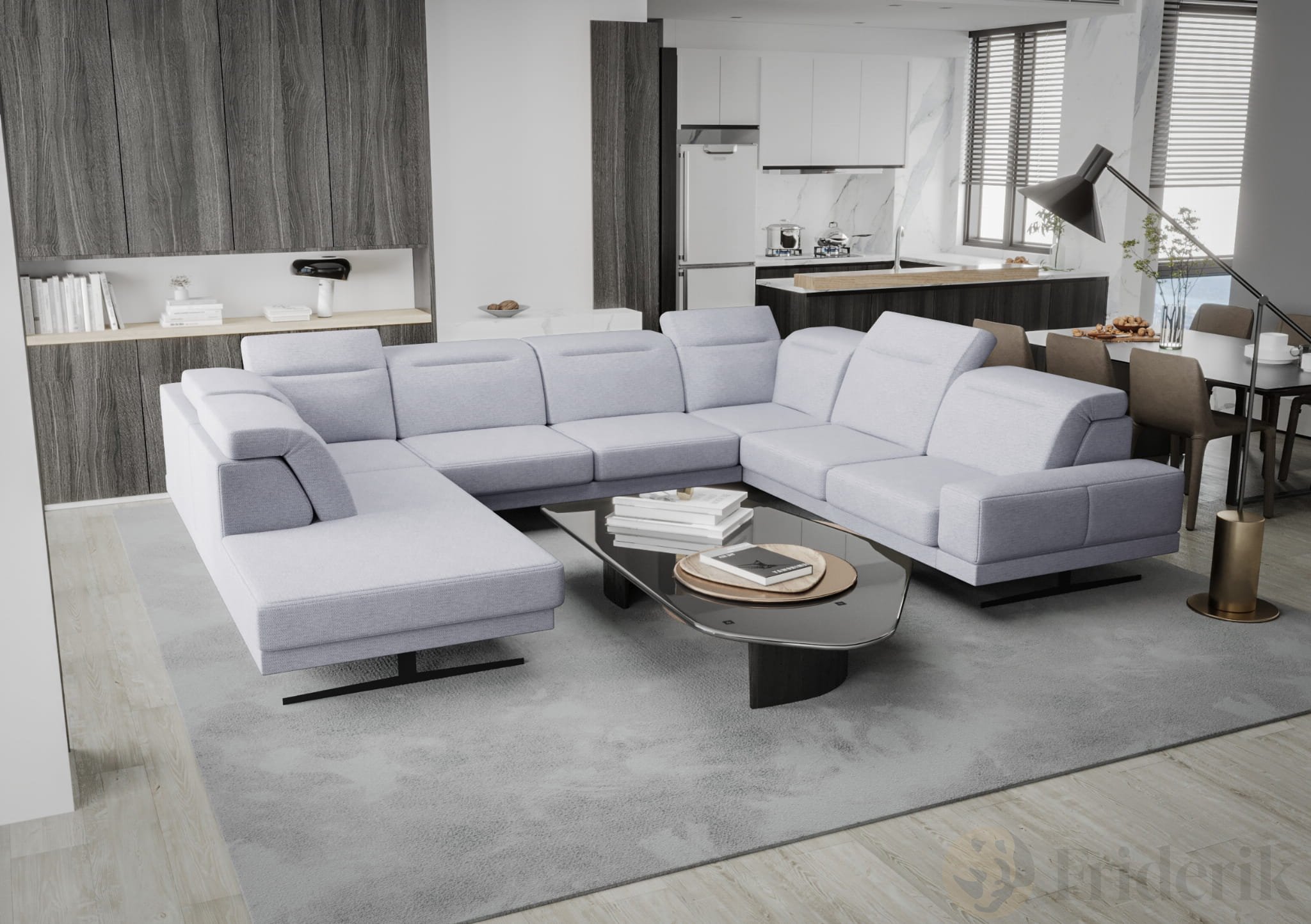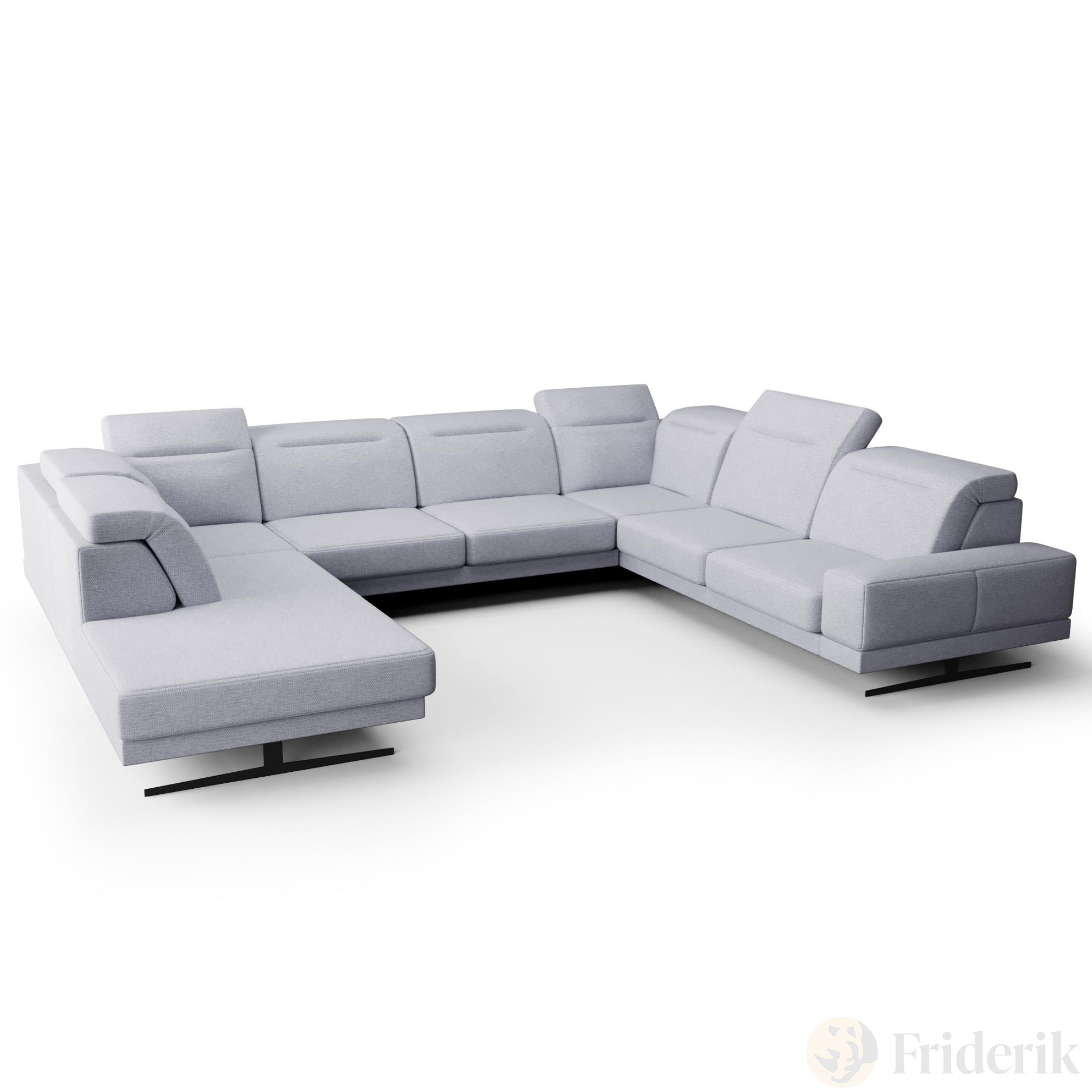 Fiore Max I Ecksofa 350x265 cm – Modernes XXL Ecksofa mit verstellbaren Kopfstützen, Stoff Aragon 70 - Hellblau