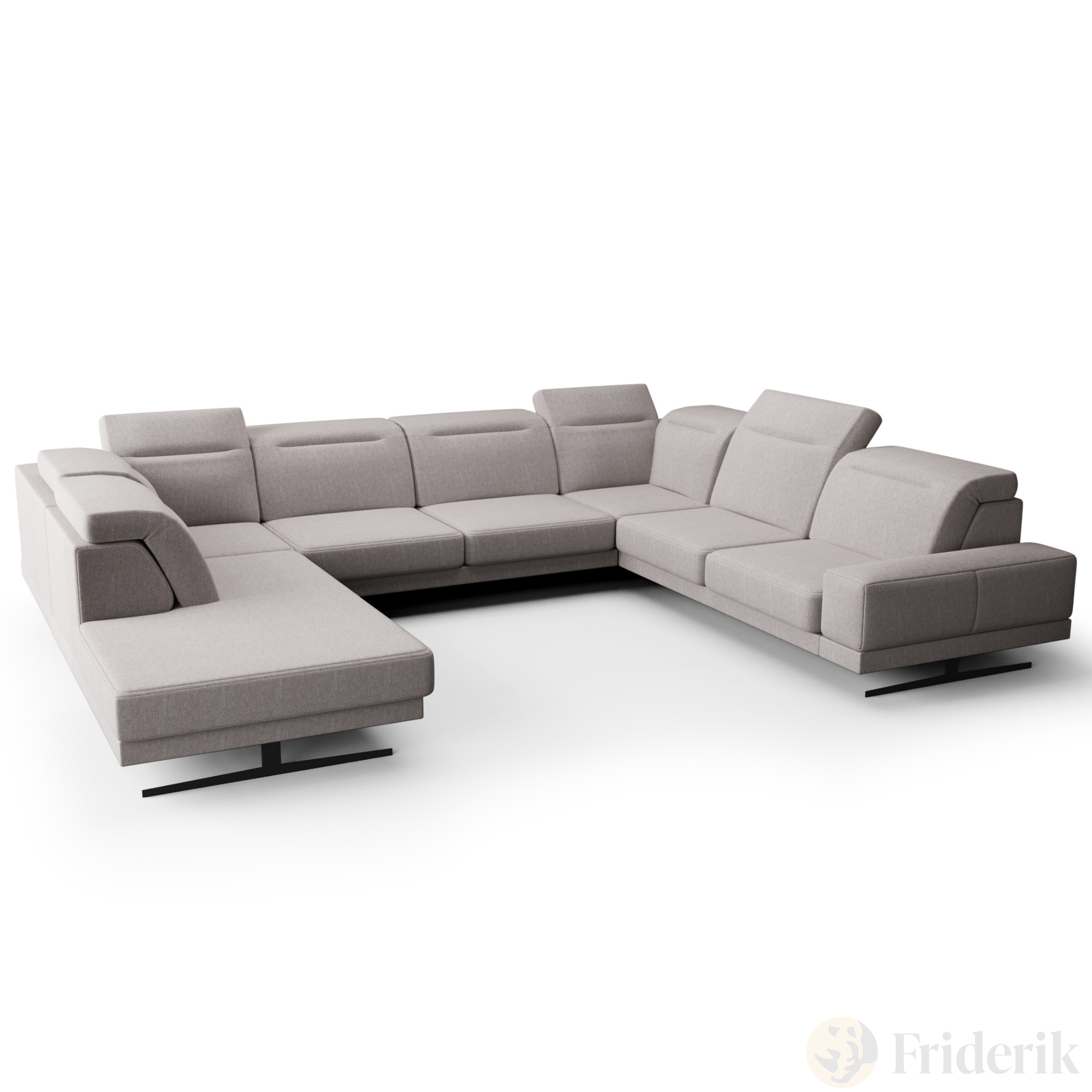 Fiore Max I Ecksofa 350x265 cm – Modernes XXL Ecksofa mit verstellbaren Kopfstützen, Stoff Gemma 80 - Hellgrau