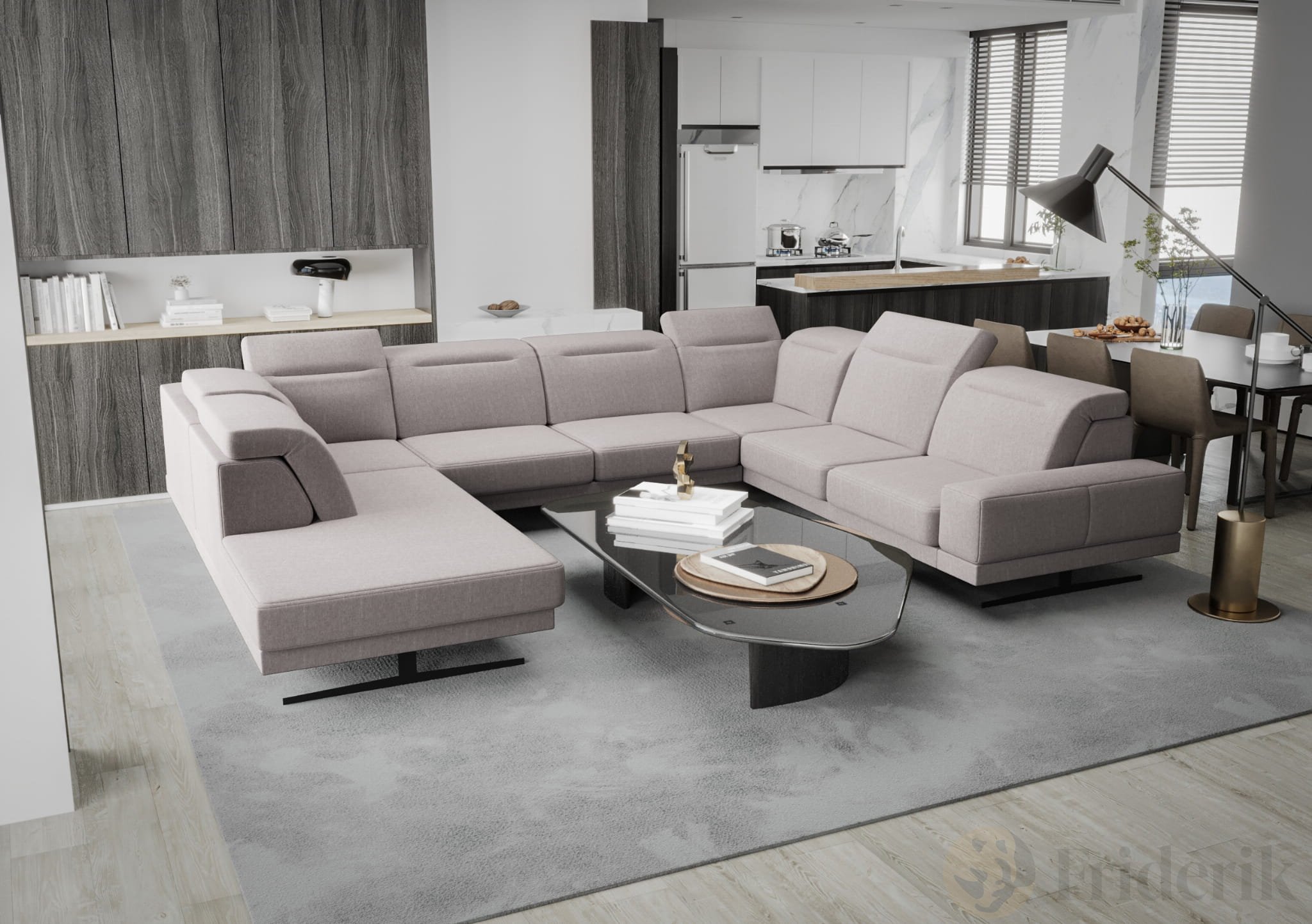 Wenn Sie ein großes, modernes Ecksofa suchen, das Design, Stabilität und außergewöhnlichen Sitzkomfort vereint, ist das Fiore Max I die ideale Wahl. Es füllt großzügige Räume mit Stil, bietet ergonomischen Komfort dank verstellbarer Kopfstützen und überzeugt durch langlebige Materialien.