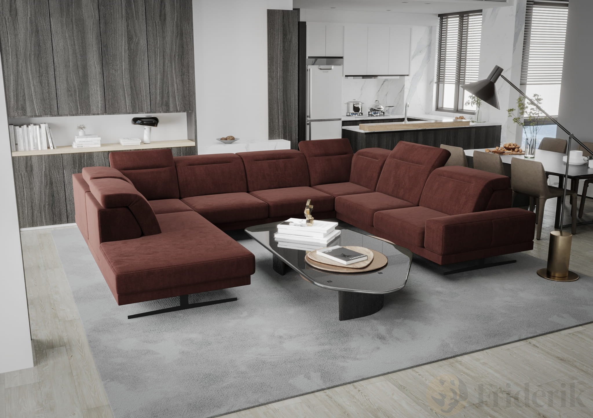 Fiore Max I Ecksofa 350x265 cm – Modernes XXL Ecksofa mit verstellbaren Kopfstützen, Stoff Terra 63 - Kupfer