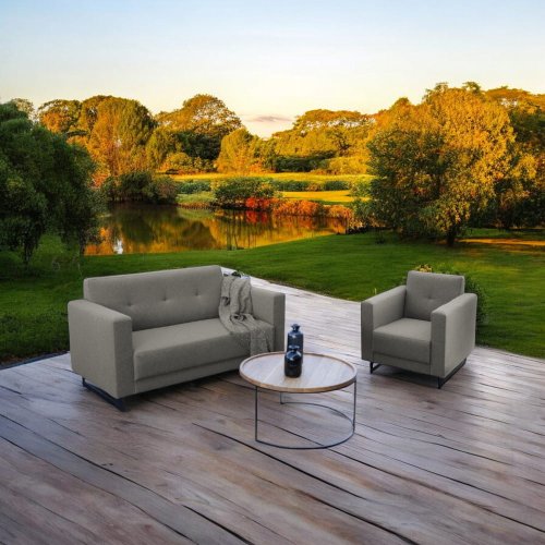 GENEVE – Modernes Gartenmöbel-Set, 2-Sitzer Sofa + 1-Sitzer Sessel, mit SUMBA-Stoff