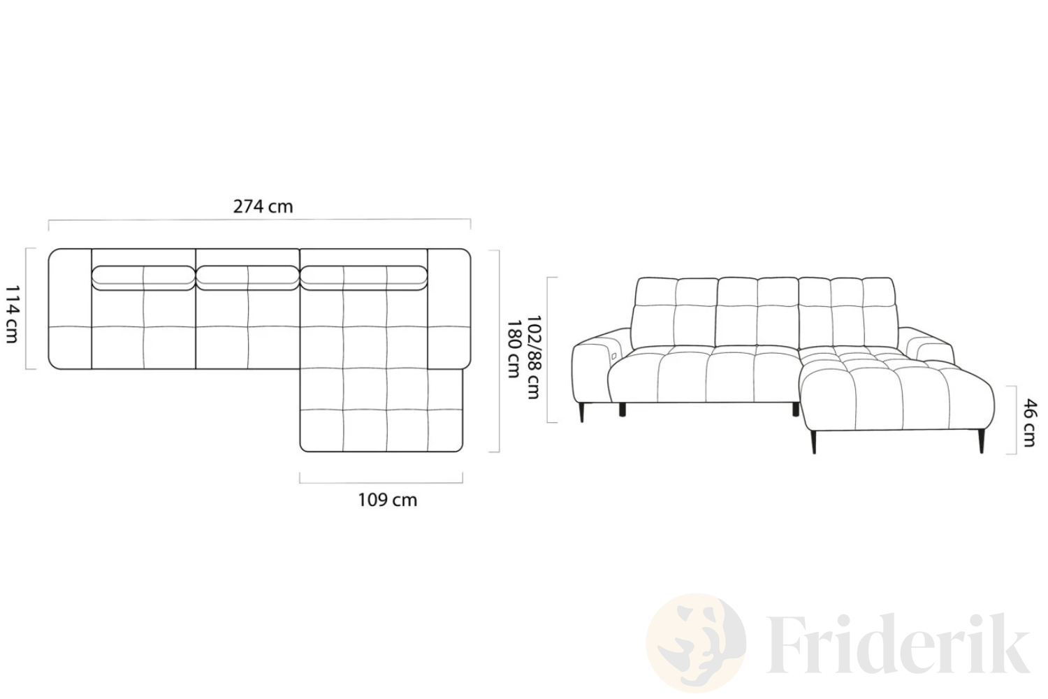 Länge der Ottomane: 109 cm