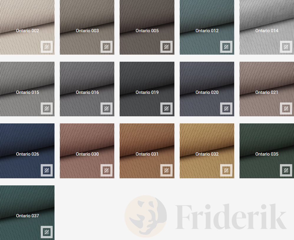 ONTARIO ist ein strapazierfähiger und feiner Cord, der mit kräftigen und dichten Streifen die Blicke auf sich zieht und ein starkes Element im Arrangement darstellt.
