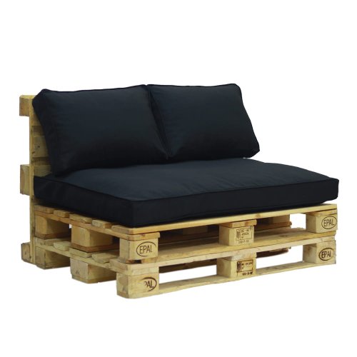 Ein 2+1 SET Palettenkissen mit Schwarz Drelich-bezug