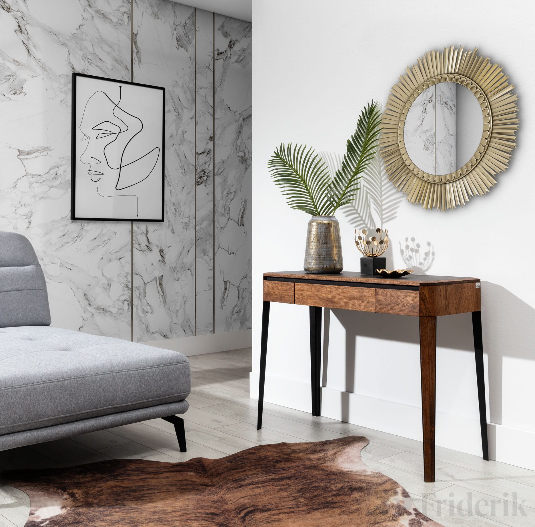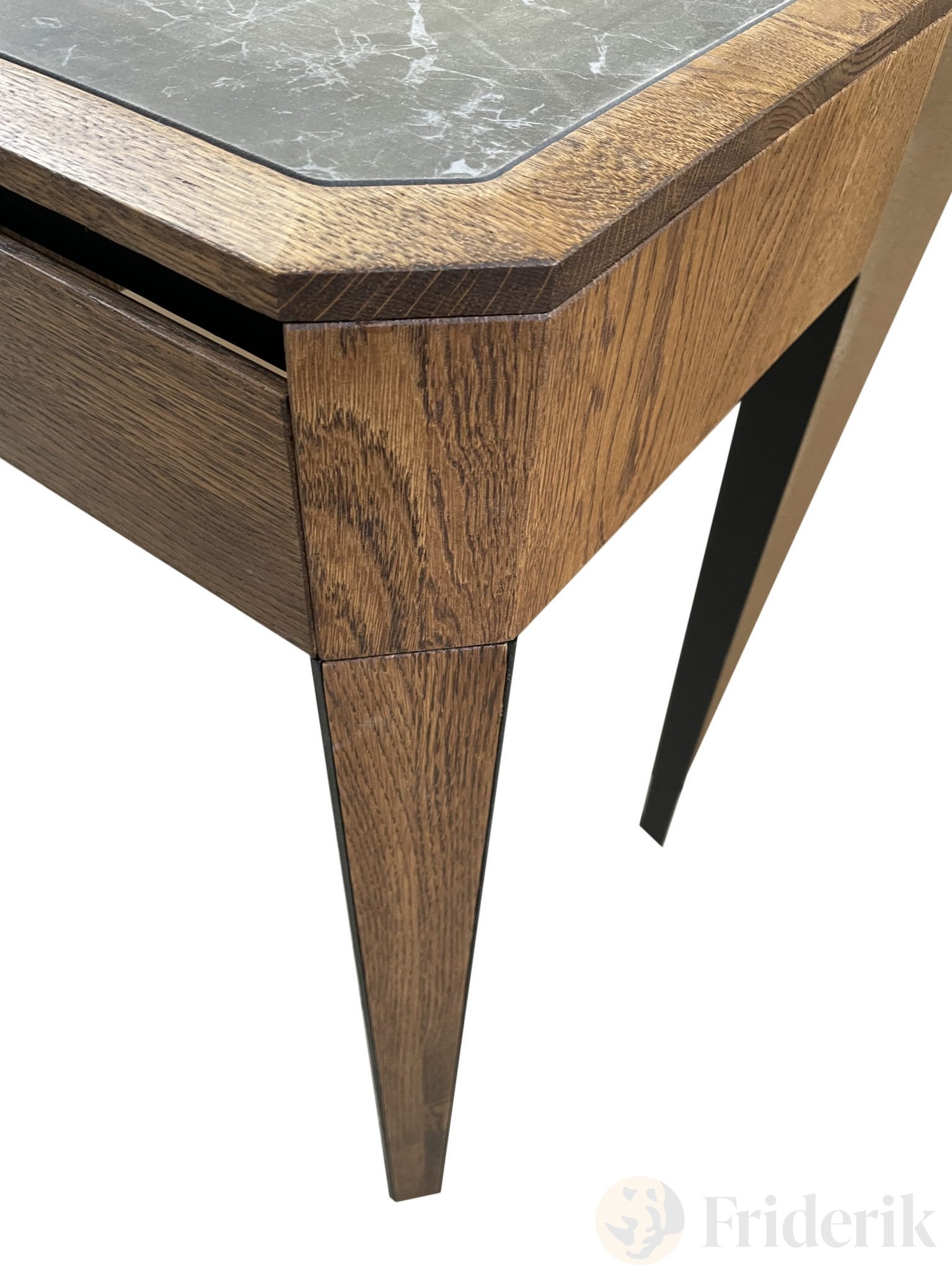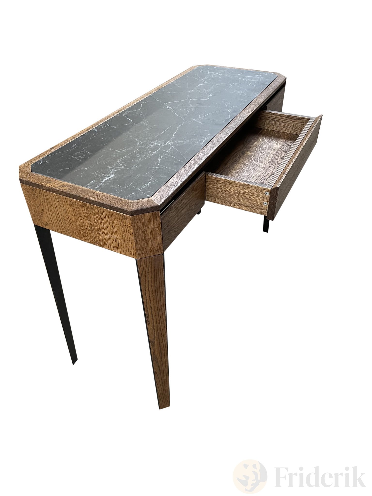 Konsolentisch aus massiver Eiche. Auf der Arbeitsplatte befindet sich gesinterter Quarz. Auch andere Möbel aus der Kollektion können zum Konsolentisch kombiniert werden. (Tisch, Schrank).