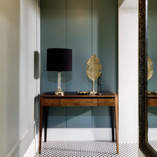 Suchen Sie einen solide gefertigten Konsolentisch für Ihr Zuhause? Möchten Sie die Farbe des Holzes und der Arbeitsplatte aufeinander abstimmen?