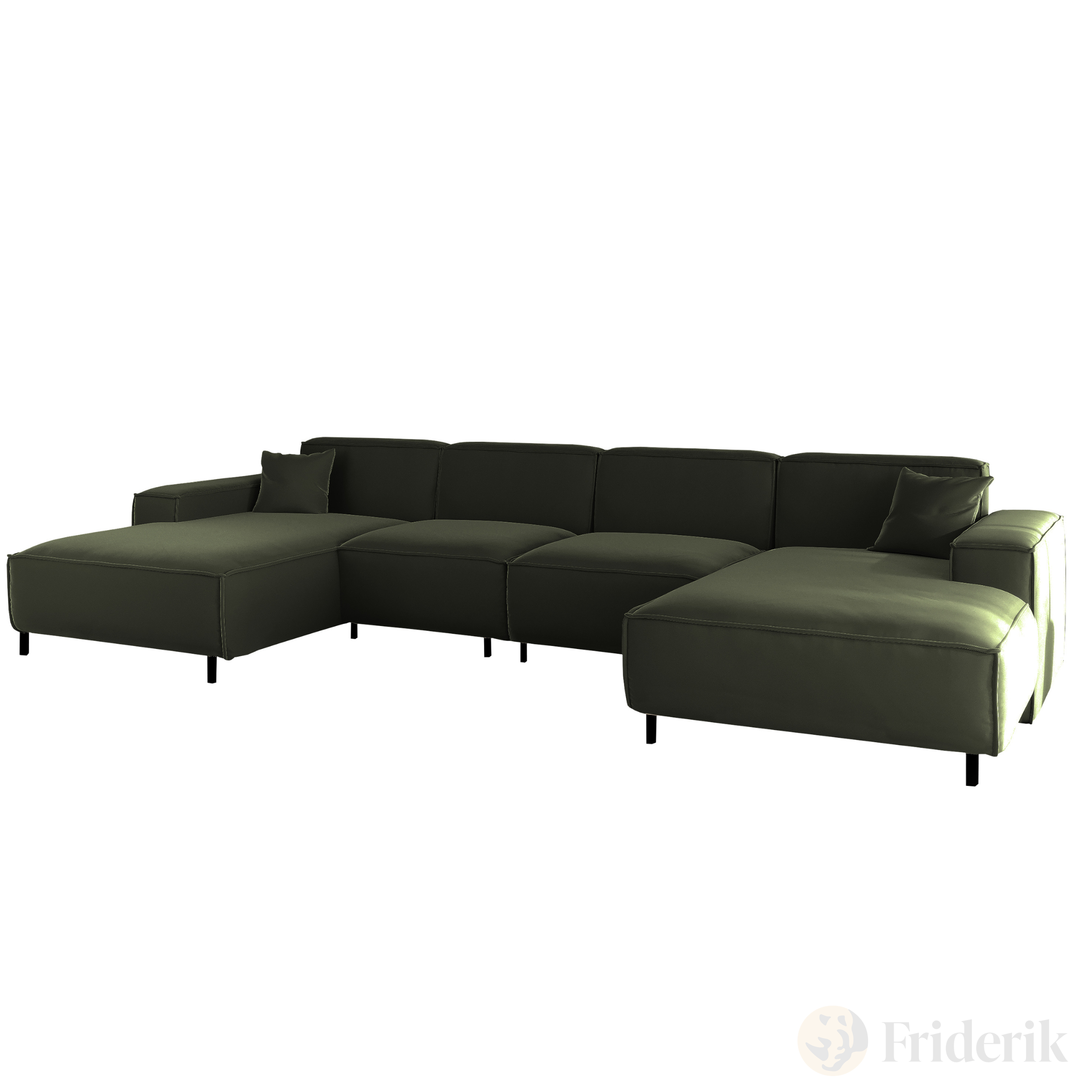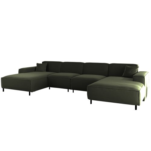 LUGA U HILLS Ecksofa in U-Form – große Wohnlandschaft, freistehend, mit Wellenfedern Typ B und Tiffany Veloursbezug - Grün