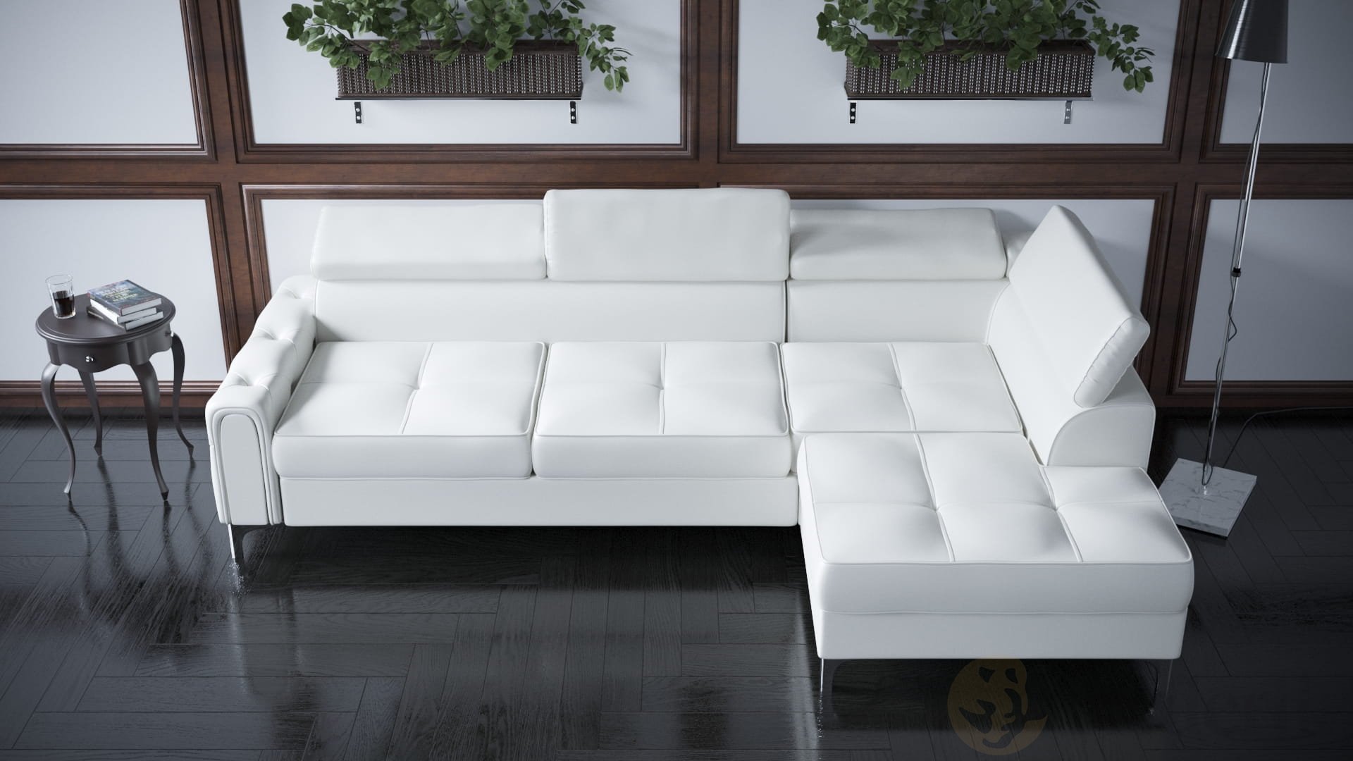 Ledersofa ORION L-Form 255x170 mit Schlaffunktion – Echtleder Eckcouch modern & bequem, Weiß