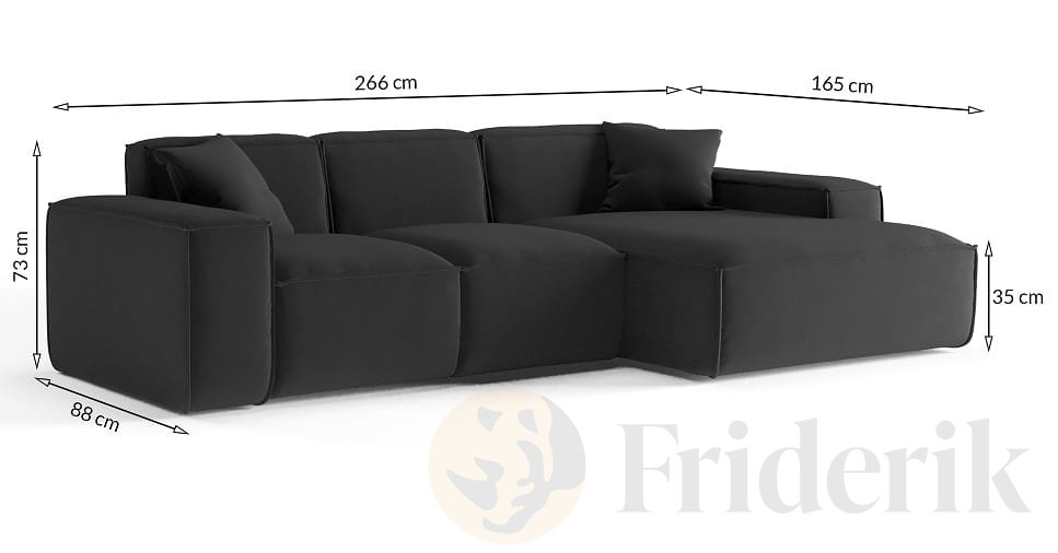 Luga Ecksofa L – Velvet Opera, modernes Design, breite Armlehnen, dekorative Kissen - Schwarz
