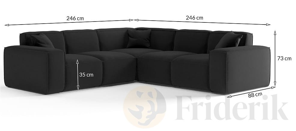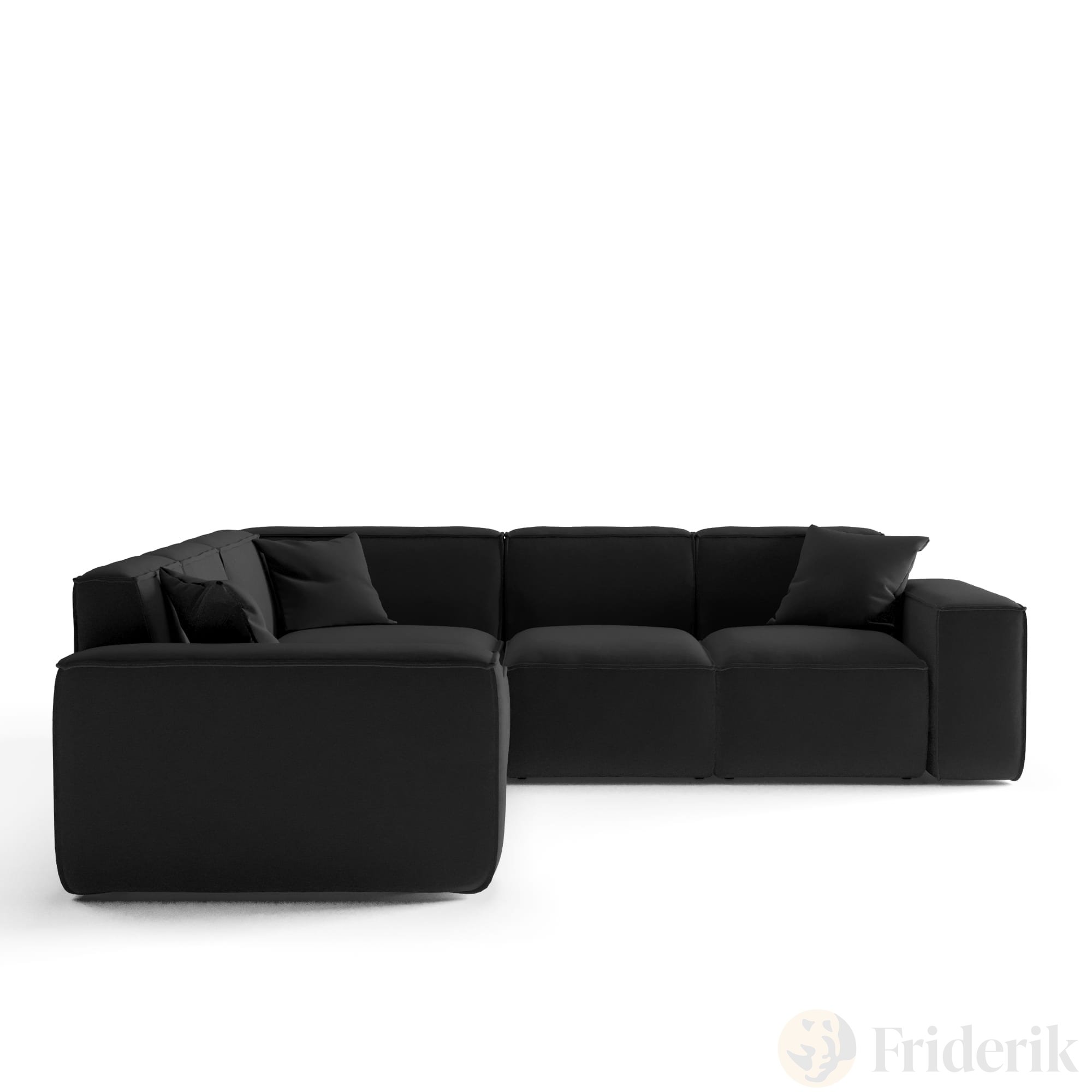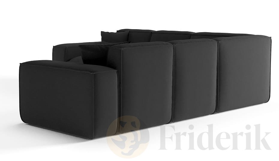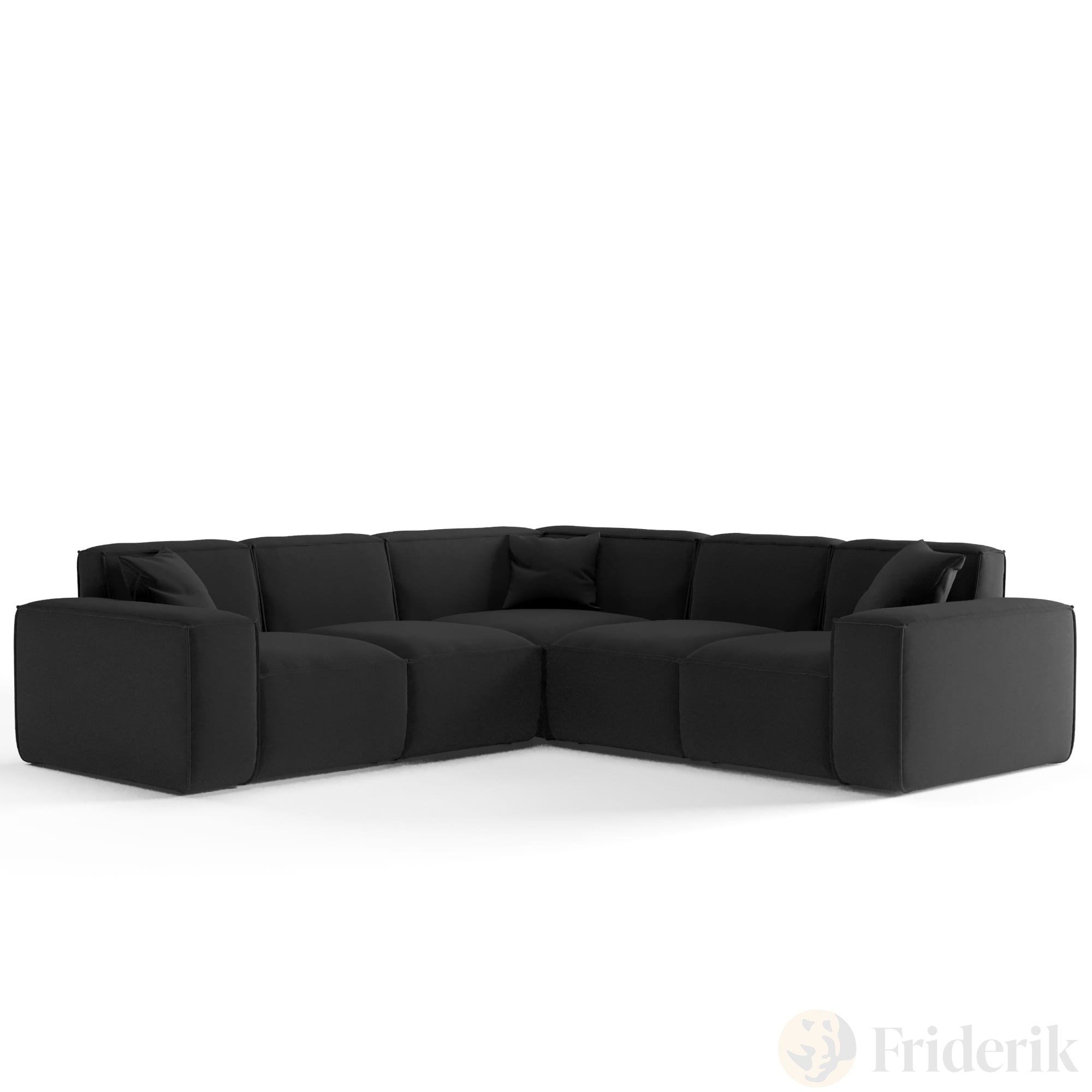 Luga Ecksofa – Velvet, Komfort & dekorative Kissen inklusive - Schwarz