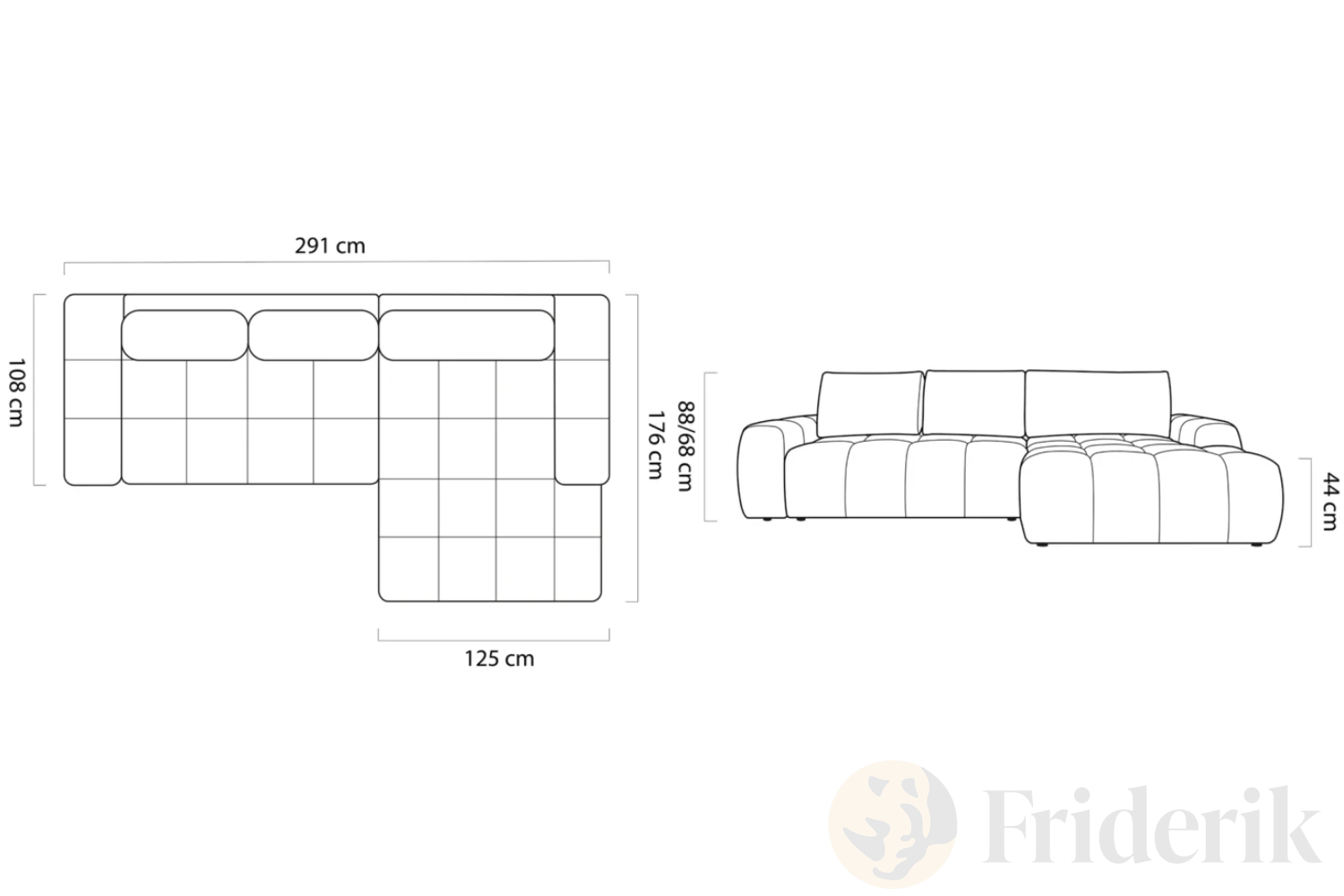 - Gesamtbreite: 291 cm