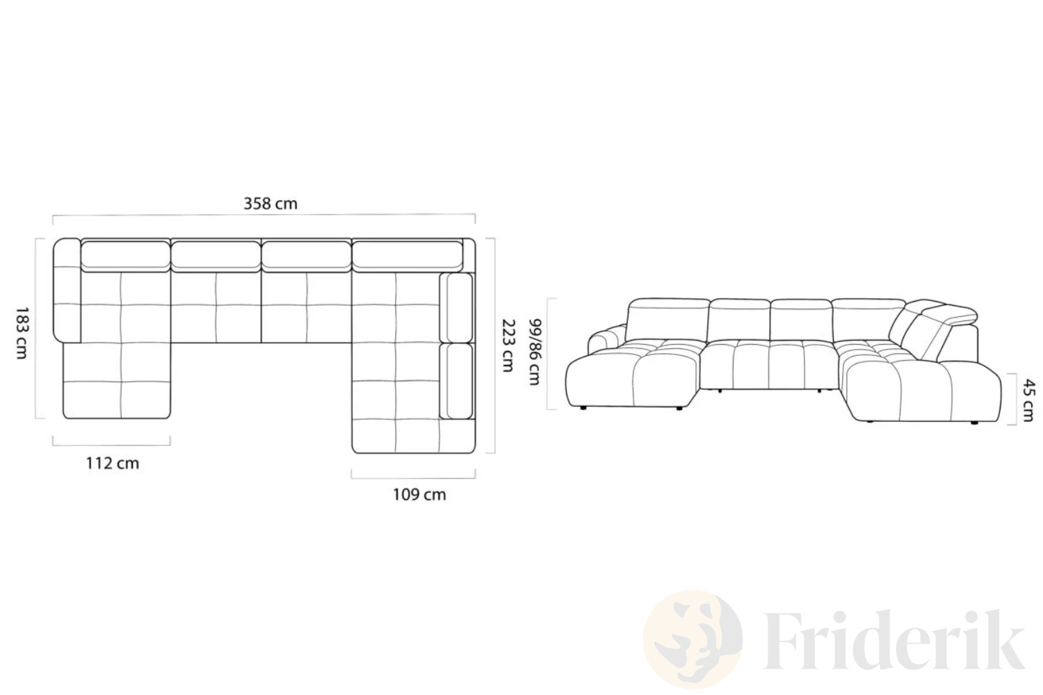 - Sofa Breite: 358 cm