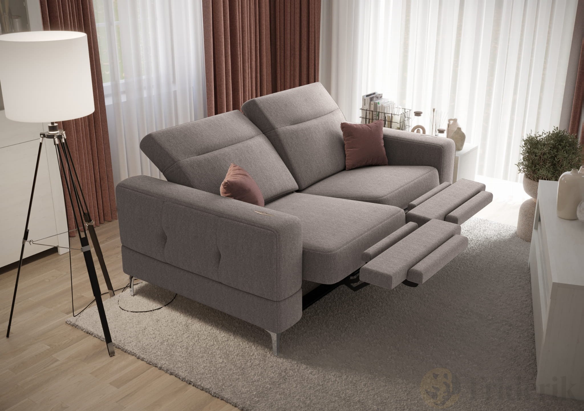 Malibu Relax II 2-Sitzer mit elektrischer Relaxfunktion, 180 cm, Gemma Stoff, verstellbaren Kopfstützen, stilvolle Metallfüße, Hellgrau (Gemma 86)