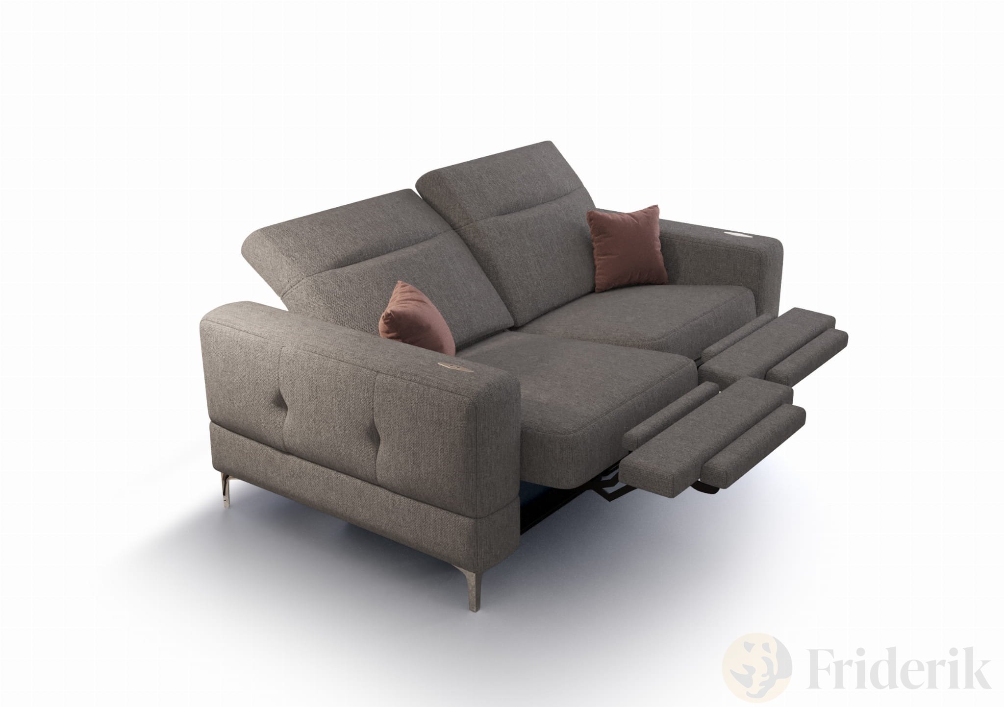 Malibu Relax II 2-Sitzer mit elektrischer Relaxfunktion, 180 cm, Gemma Stoff, verstellbaren Kopfstützen, stilvolle Metallfüße, Taubengrau (Gemma 85)