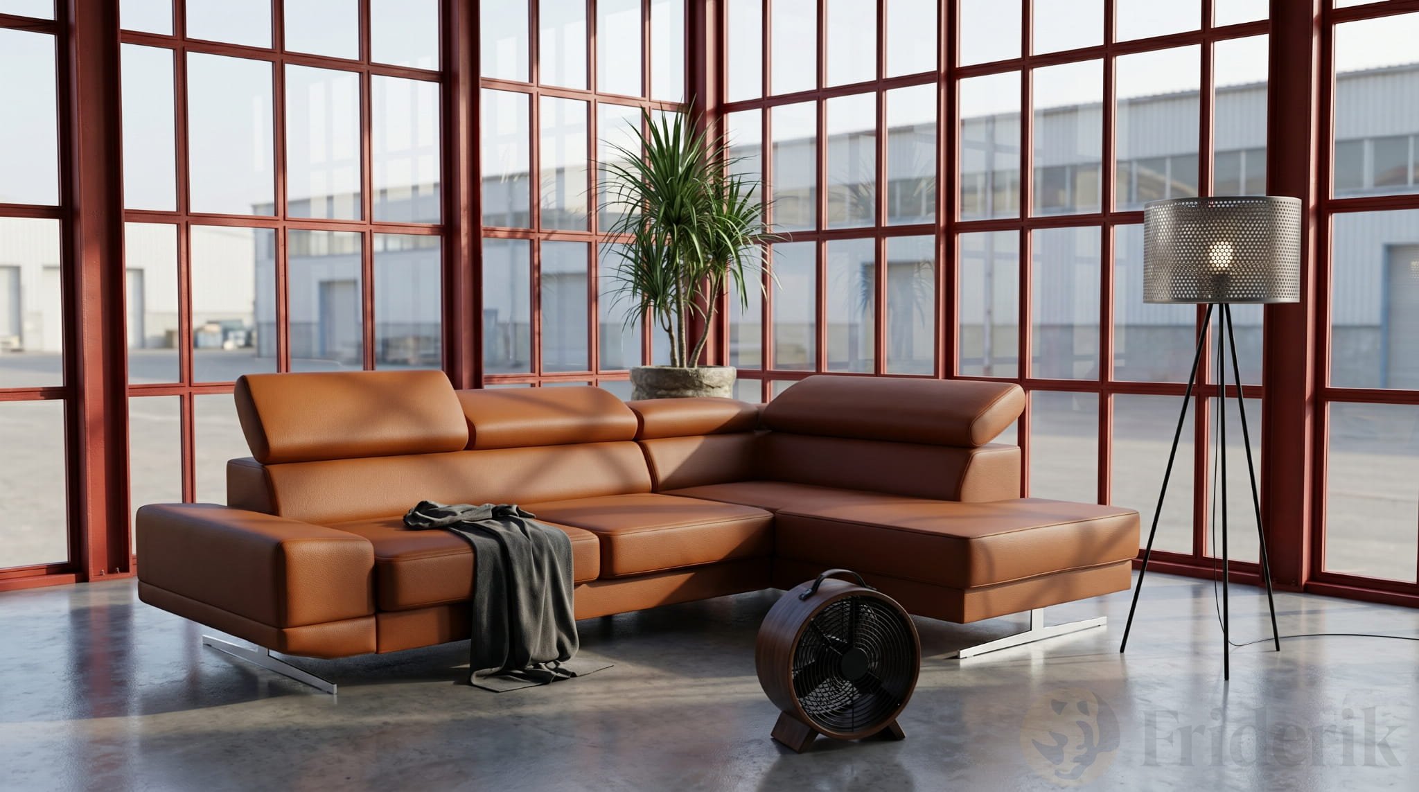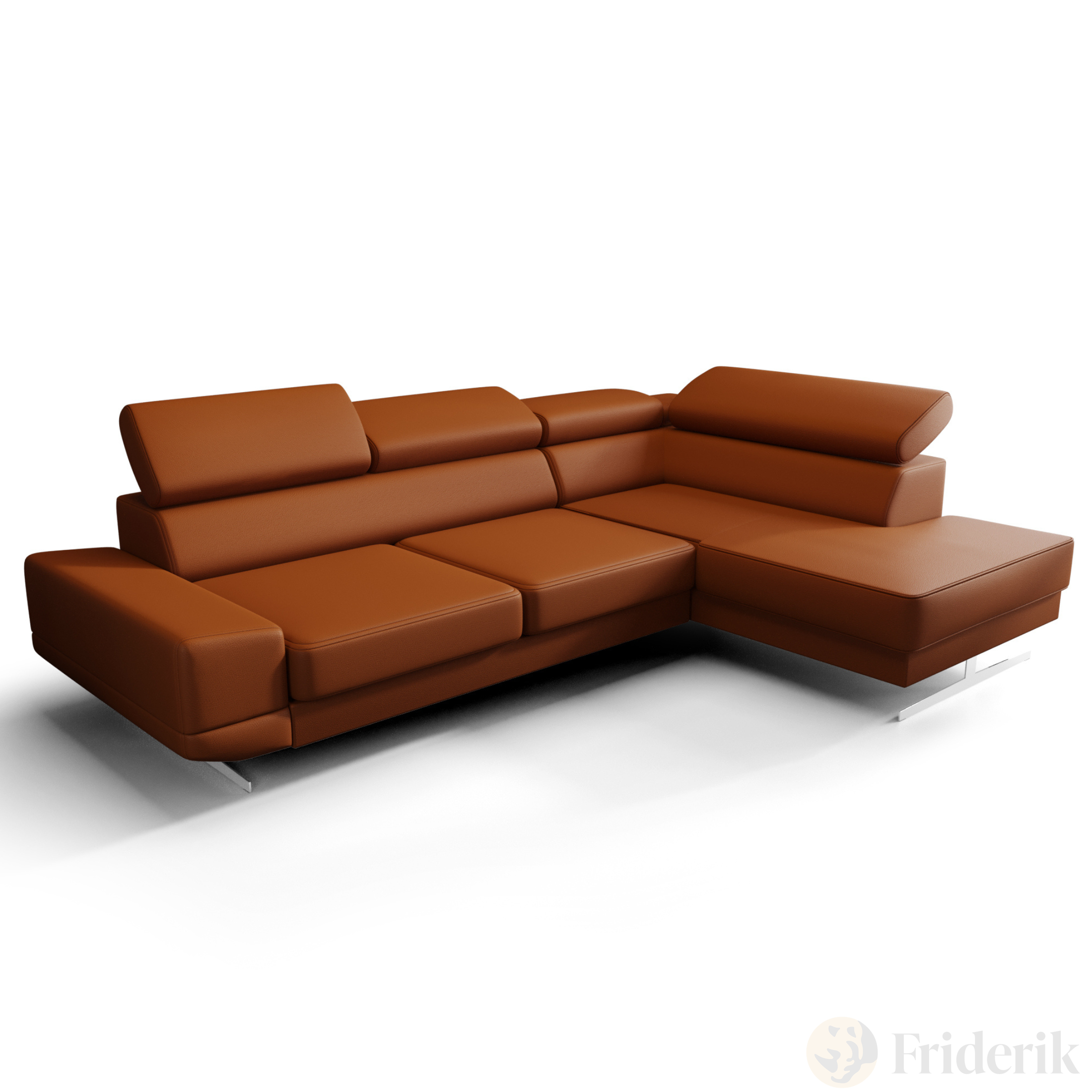 Milano I Ecksofa 270x180 cm – Modernes Ecksofa mit verstellbaren Kopfstützen, Echtleder L-6 - Ziegel