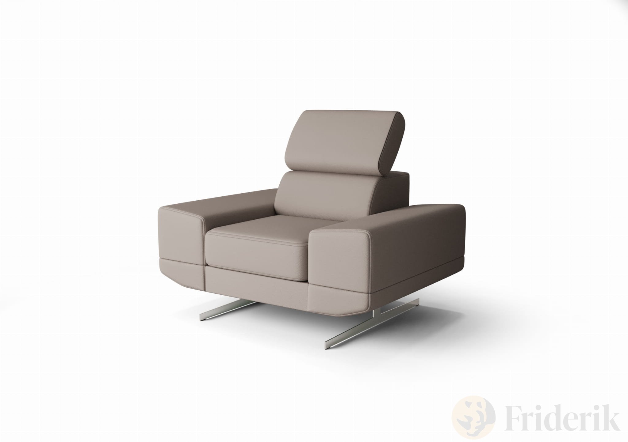 Milano Sessel 125 cm – Moderner Sessel mit verstellbarer Kopfstütze und T35+HR Schaum, Echtleder L-11 - Beige