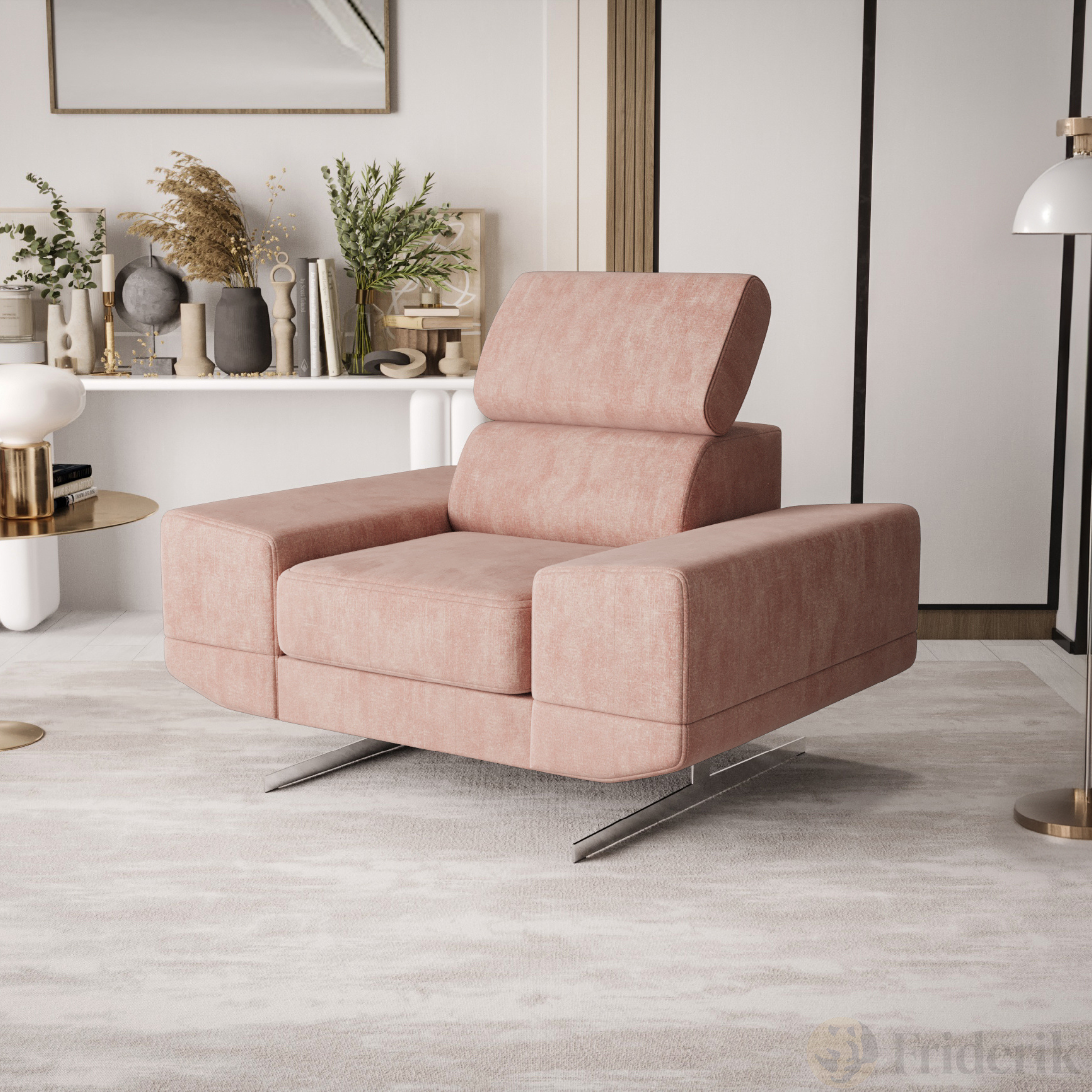 Milano Sessel 125 cm – Moderner Sessel mit verstellbarer Kopfstütze und T35+HR Schaum, Stoff Terra 61 - Rosa