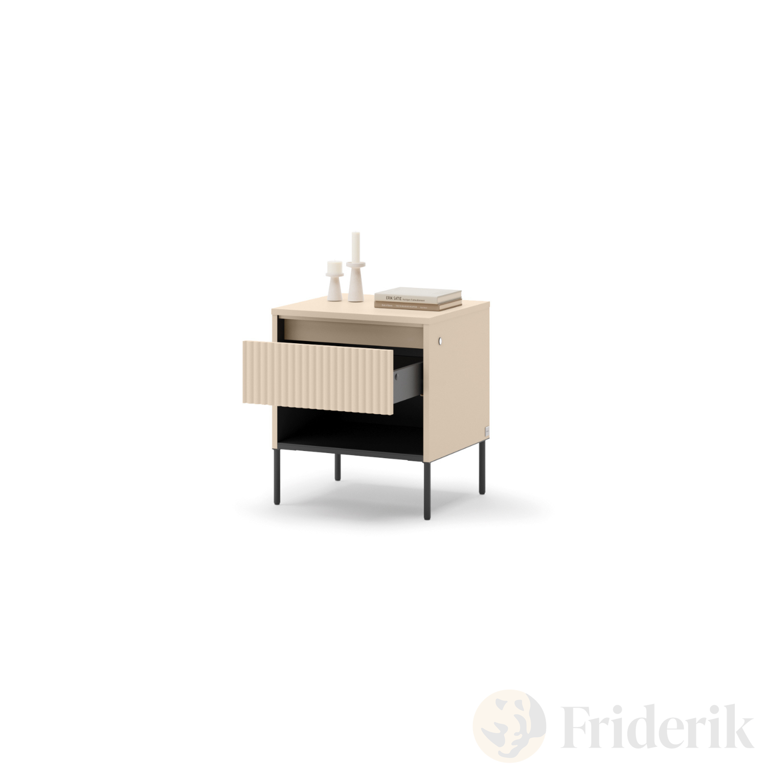 Nachttisch Trend Schlafzimmer TS-10 mit LED-Beleuchtung – Sandbeige / Schwarz