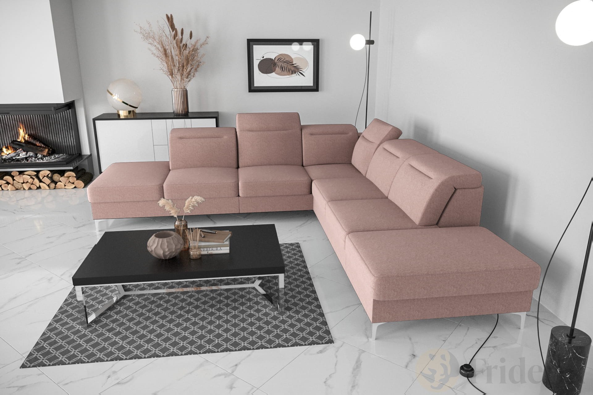 OSLO MAX 295x295 cm Ecksofa mit Schlaffunktion und verstellbaren Kopfstützen - Stoff Gemma 61, Altrosa
