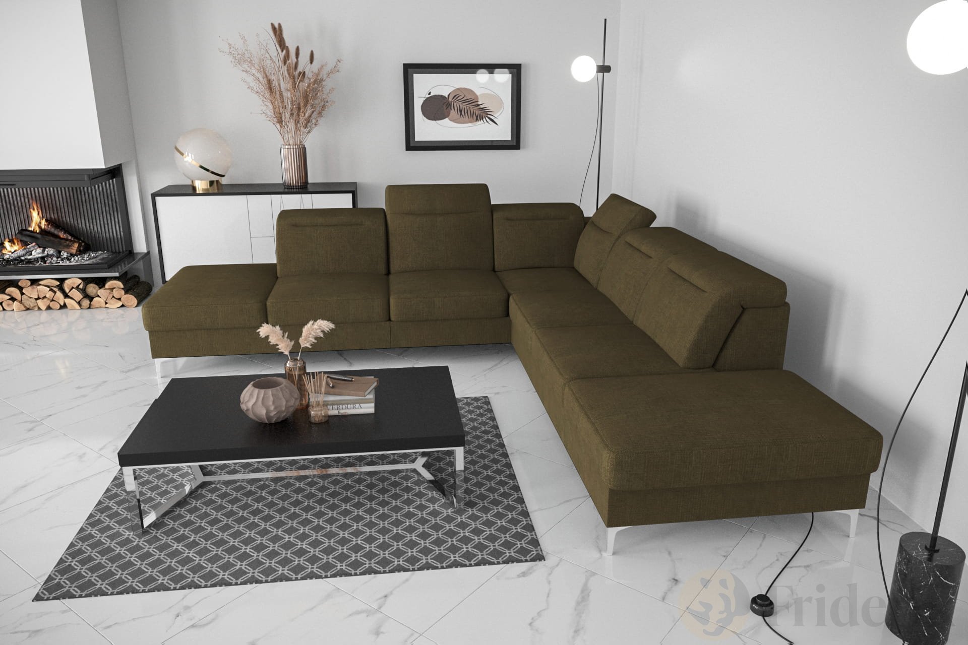 OSLO MAX 295x295 cm Ecksofa mit Schlaffunktion und verstellbaren Kopfstützen - Stoff Moly 38, Olivgrün