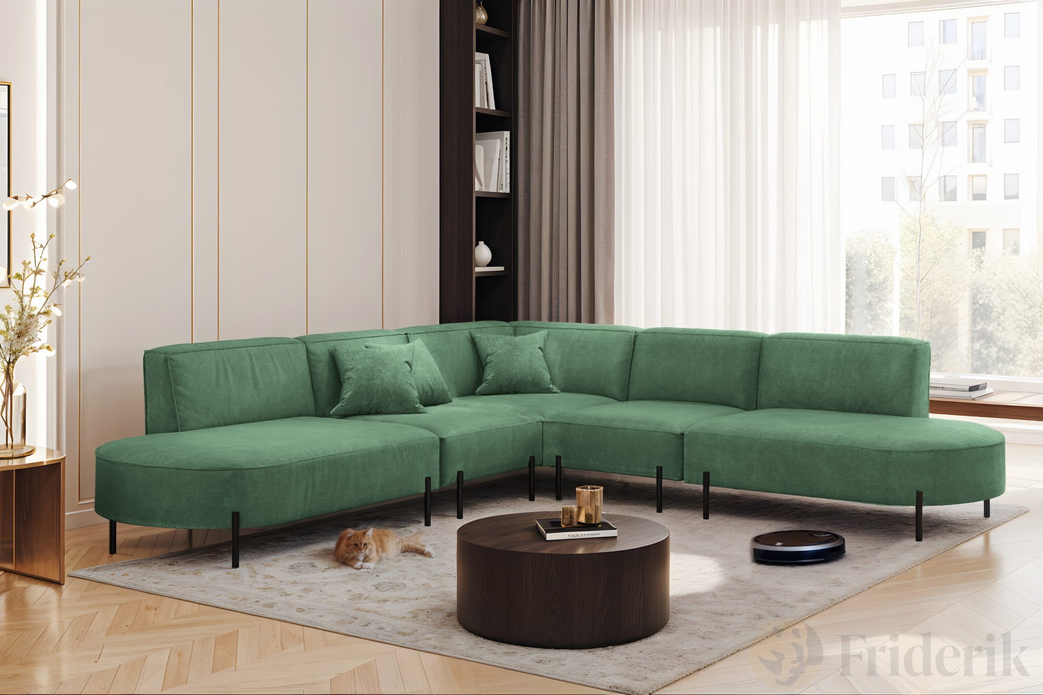 PARMA Corner HILLS Ecksofa – luxuriöser Velours NOEL mit Schattierungseffekt - Grün (Noel 09)