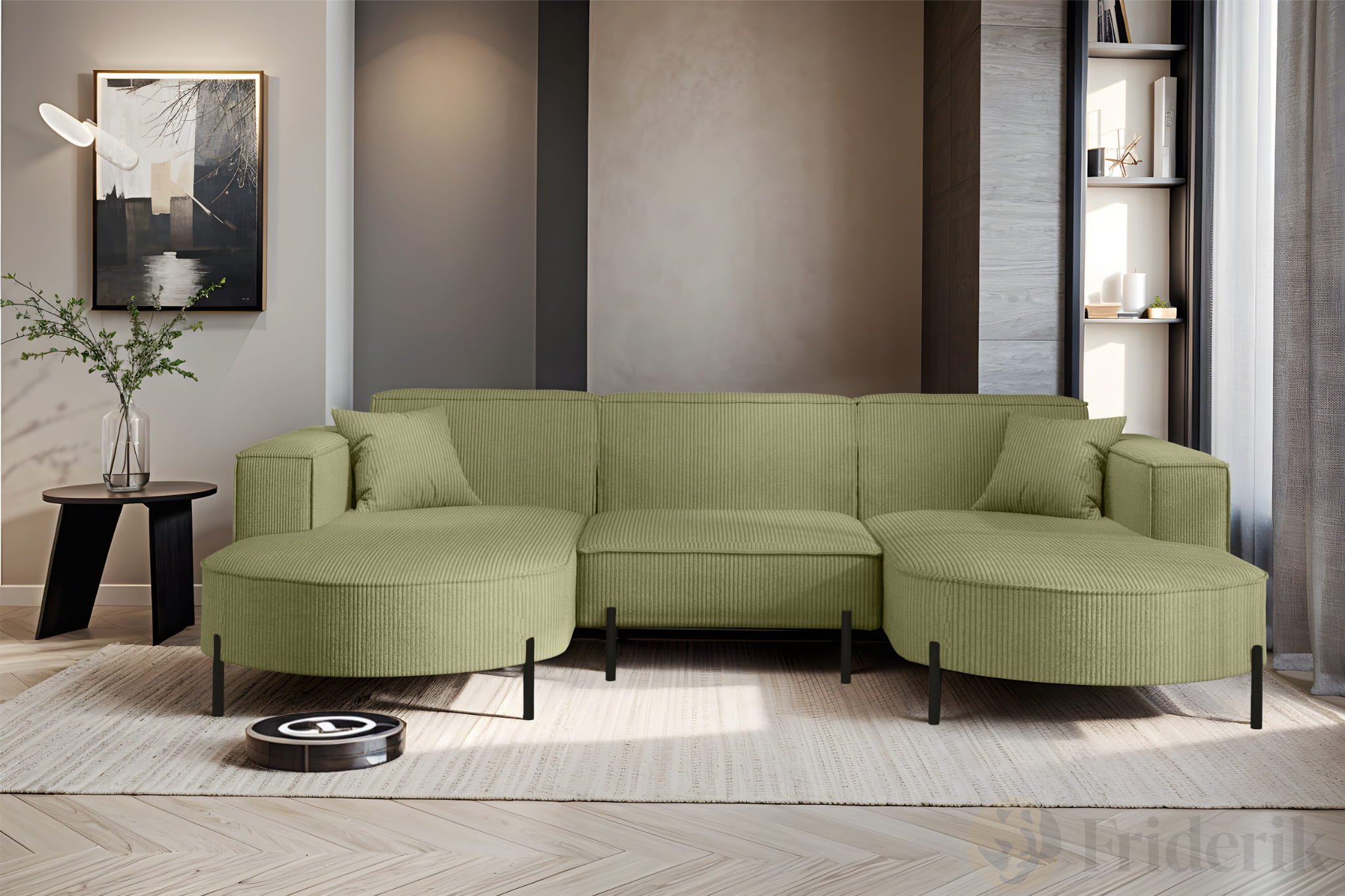 PARMA U HILLS Ecksofa – Komfortables Sofa mit Scala Cordstoff, modernes Design, 299 cm - Lime, Hellgrün