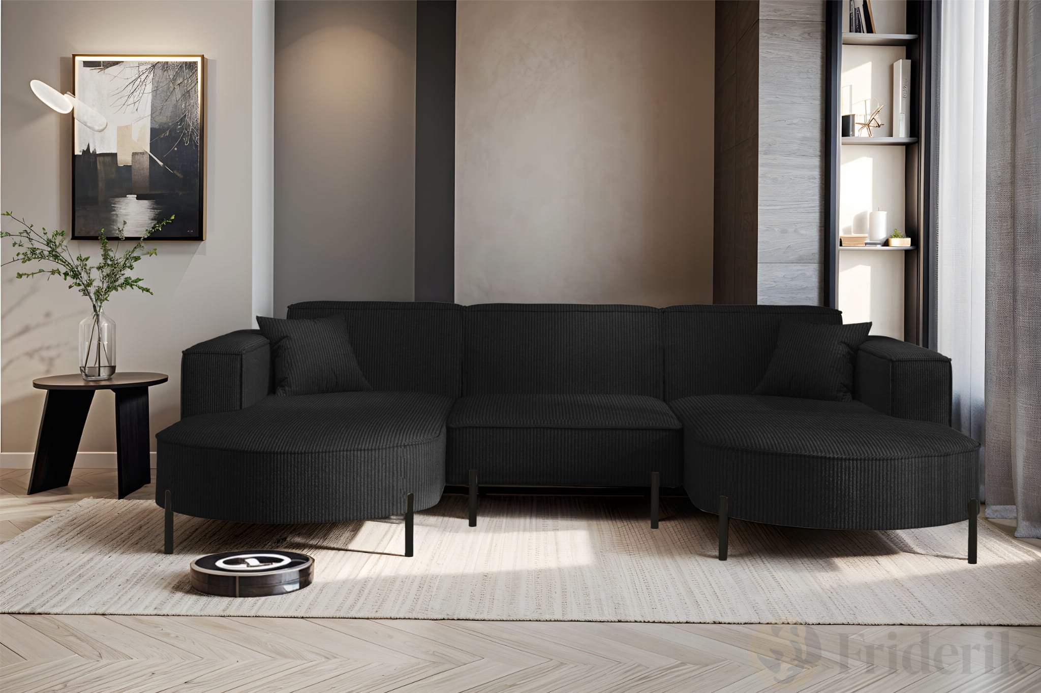 PARMA U HILLS Ecksofa – Komfortables Sofa mit Scala Cordstoff, modernes Design, 299 cm - Schwarz