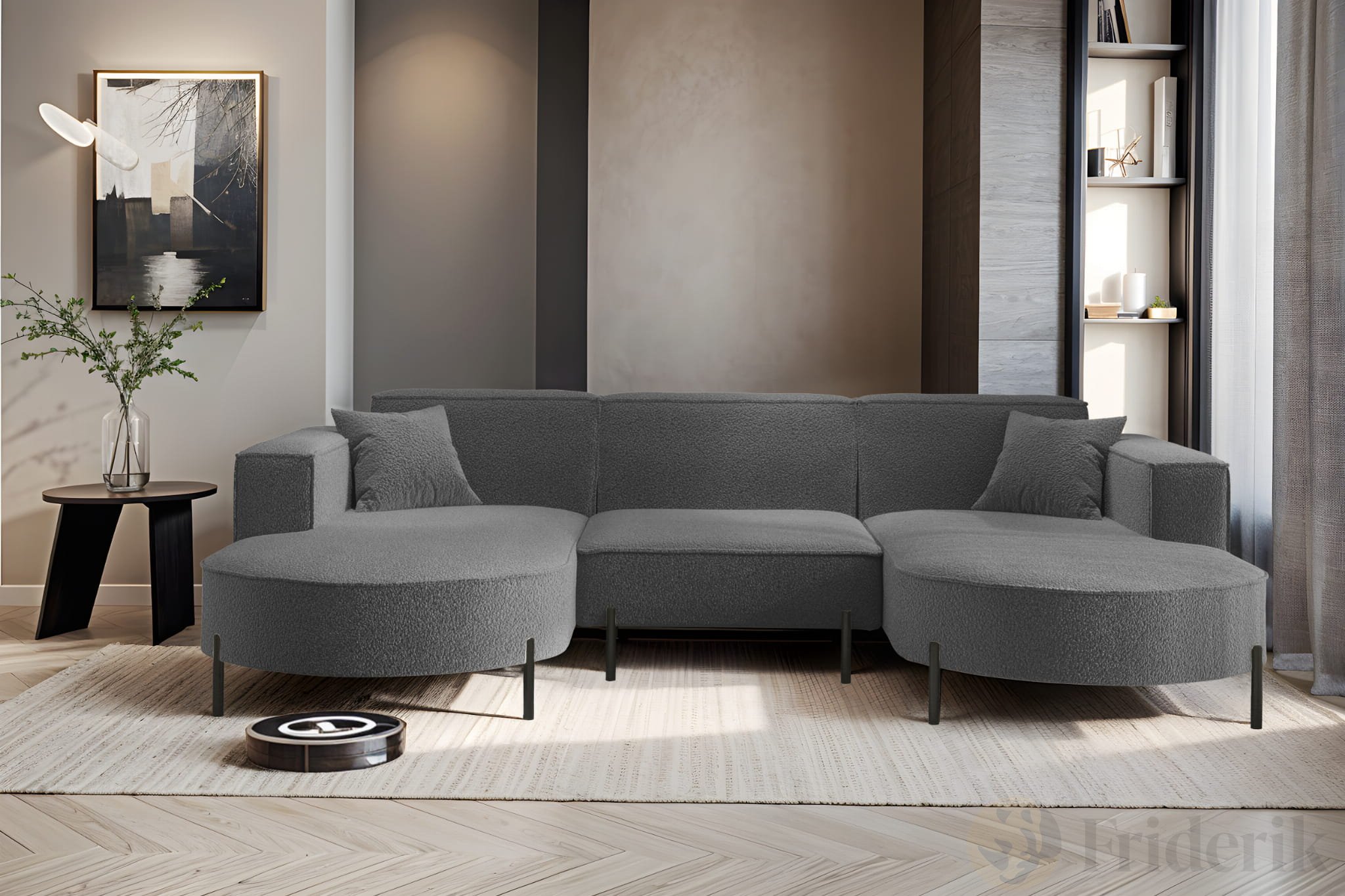 PARMA U HILLS Ecksofa – Sofa mit Bouclé Stoff Quelle, modernes Design, 299 cm - Dunkelgrau (Quelle 92)