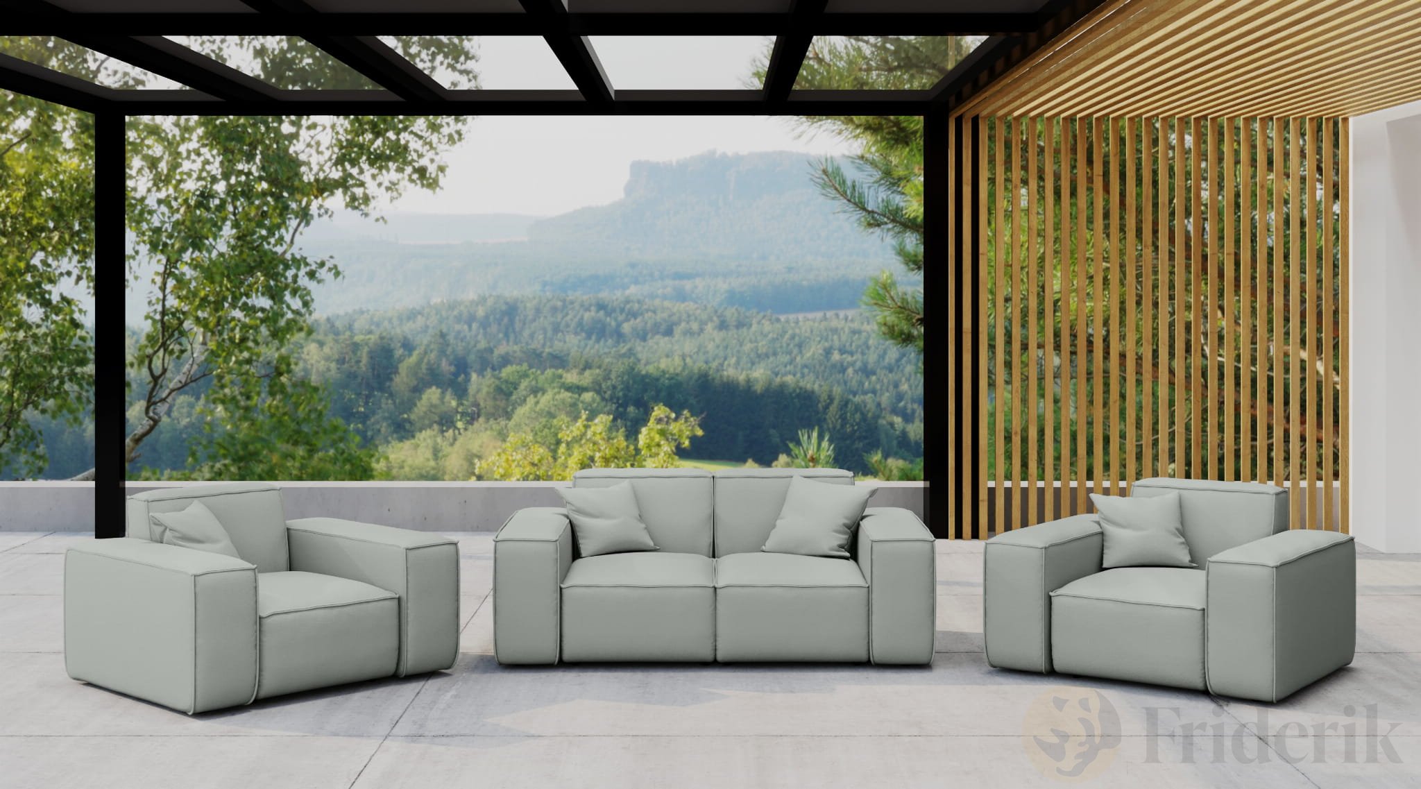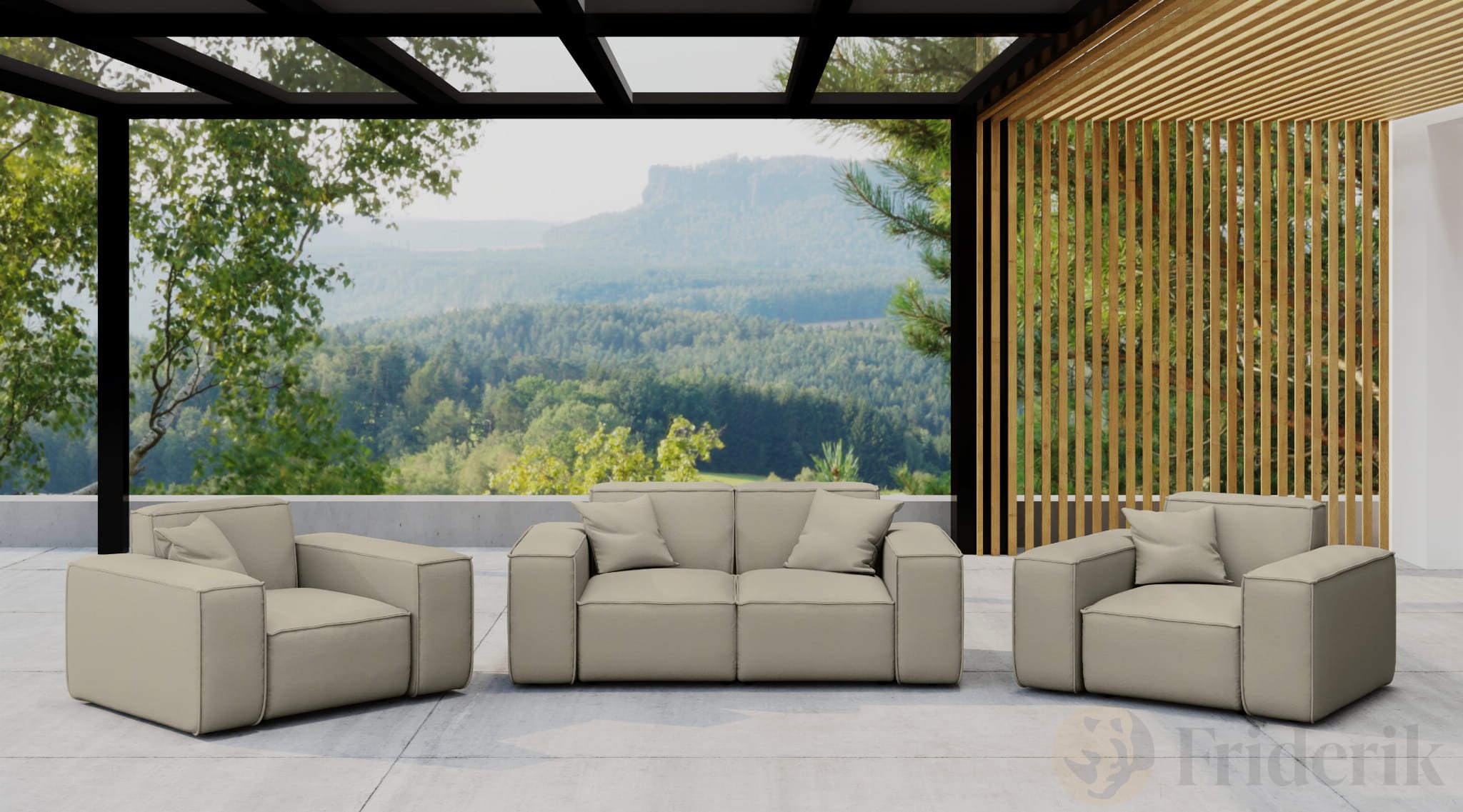Das Gartenmöbel-Set PATIO 2+1+1 ist eine elegante und funktionale Lösung für alle, die entspannten Komfort auf der Terrasse, im Garten oder auf der Veranda genießen möchten. Das Set besteht aus einem 2-Sitzer-Sofa und zwei bequemen Sesseln, die ausreichend Platz für entspannte Momente mit Familie und Freunden bieten. Dank seines modernen, minimalistischen Designs fügt es sich harmonisch in verschiedene Außenbereiche ein und verleiht ihnen einen stilvollen Charakter.