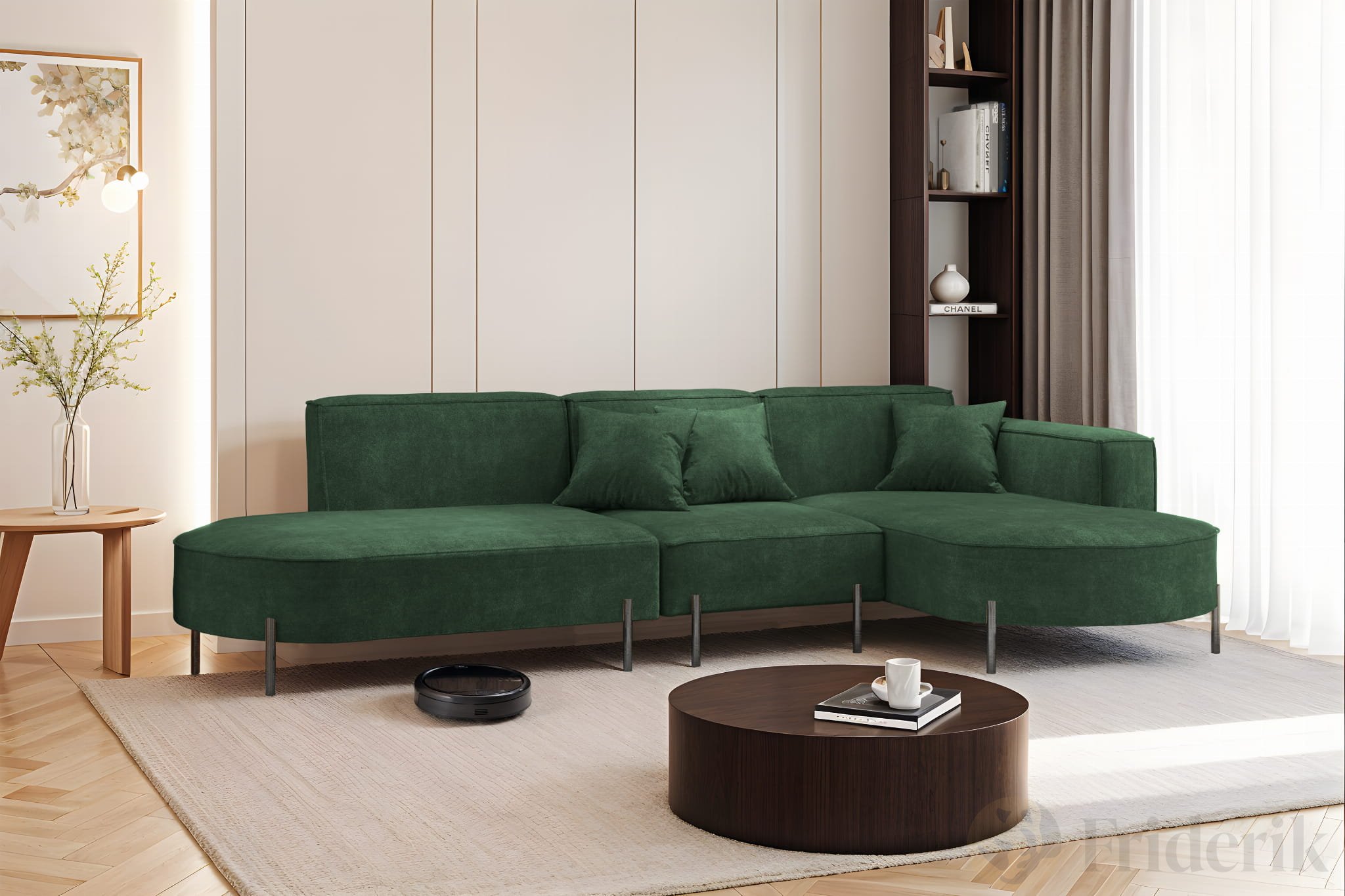 Parma Hills L – elegantes Ecksofa in L-Form mit hohen Beinen und Velours Noel - Dunkelgrün (Noel 20)